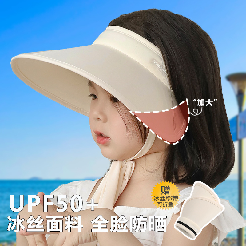 儿童帽子夏季女童防晒帽空顶冰丝大帽檐亲子遮阳帽男童宝宝太阳帽