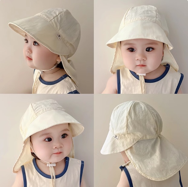 宝宝夏季防晒帽大帽檐披肩帽护脖速干儿童透气户外遮阳太阳渔夫帽