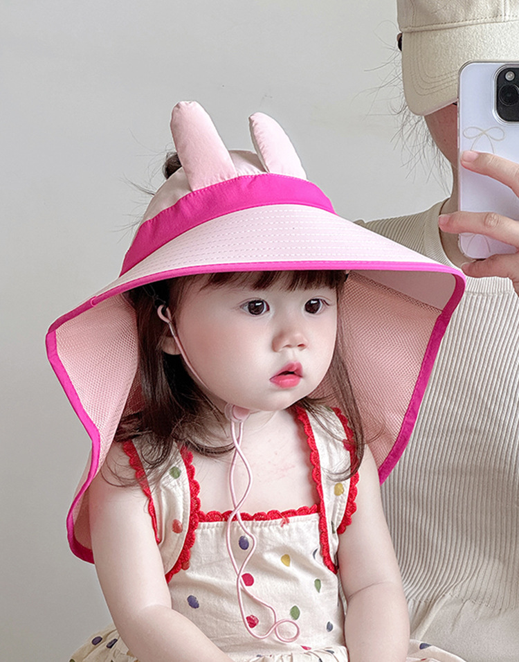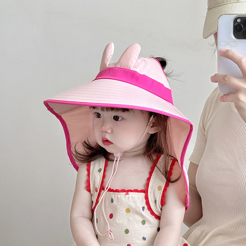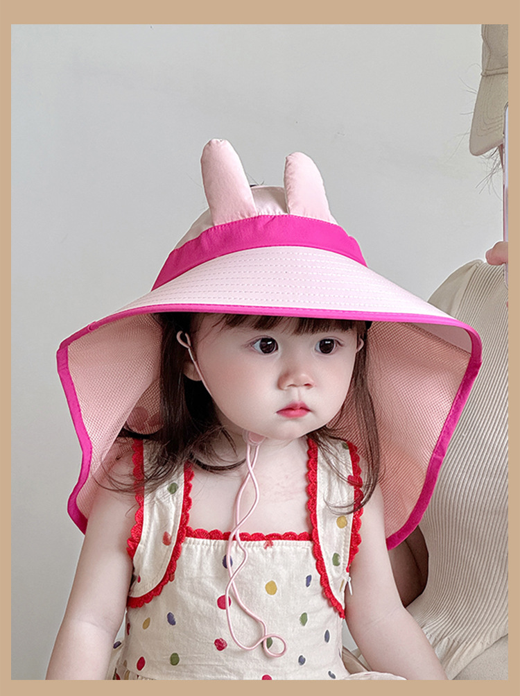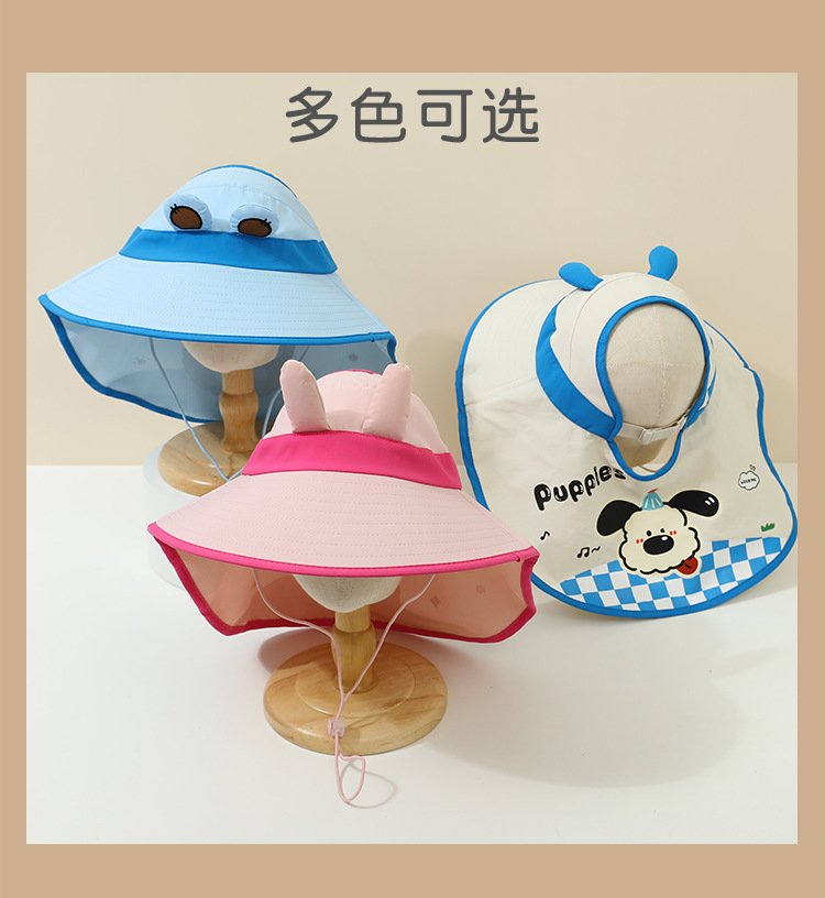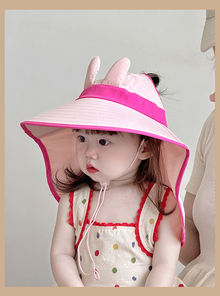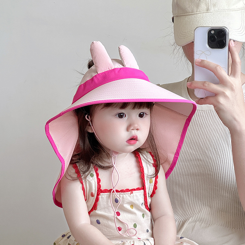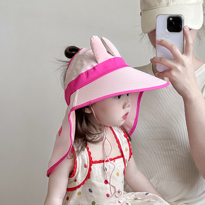 儿童帽子夏季薄款大帽檐遮阳防晒披肩空顶帽男童女宝宝出游太阳帽