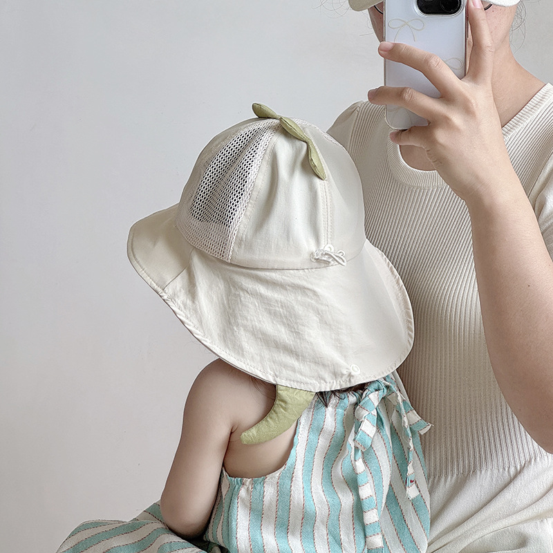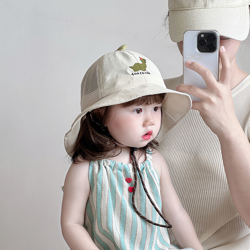 儿童帽子夏季薄款透气大帽檐披肩帽男女宝宝出游遮阳防晒渔夫网帽