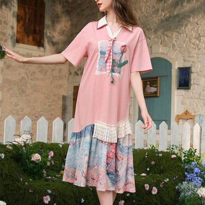 粉色连衣裙女夏季2025新款夏天多巴胺裙子度假长裙晚春叙景