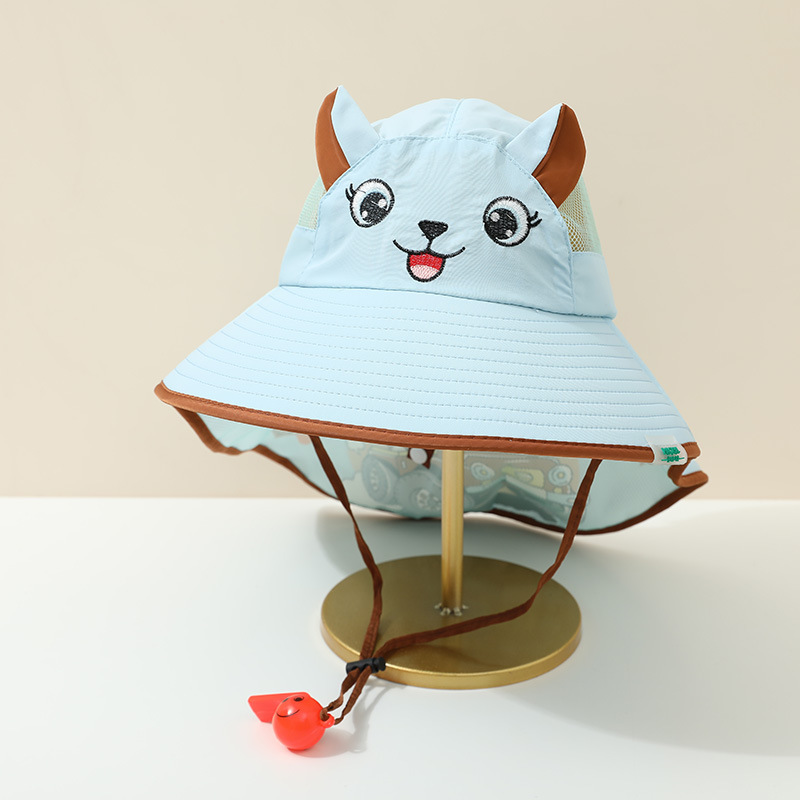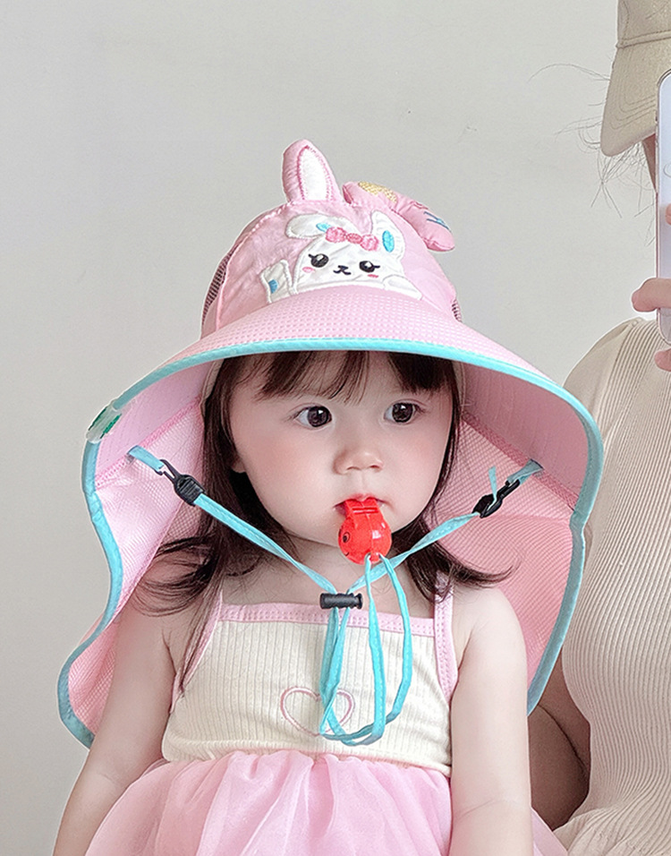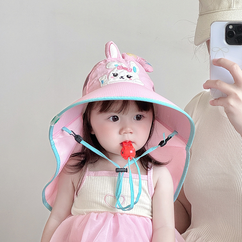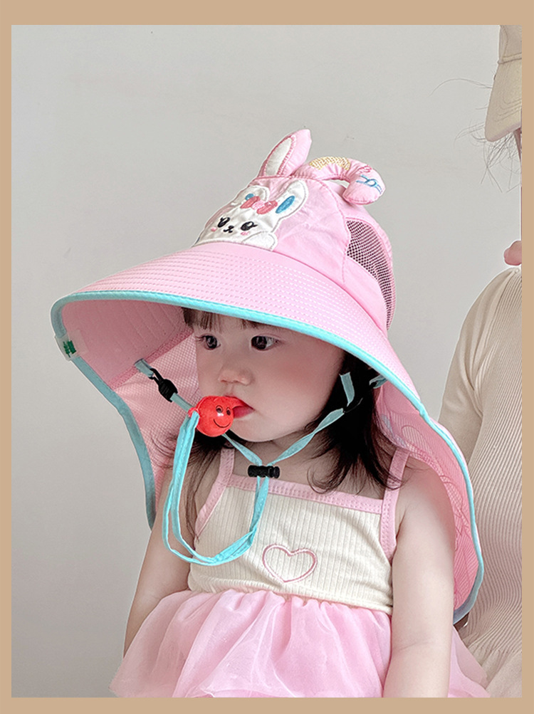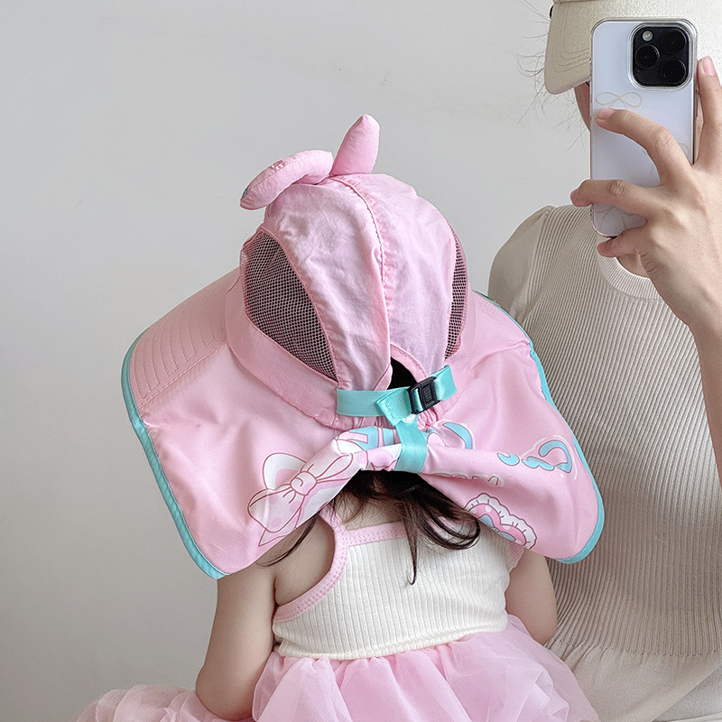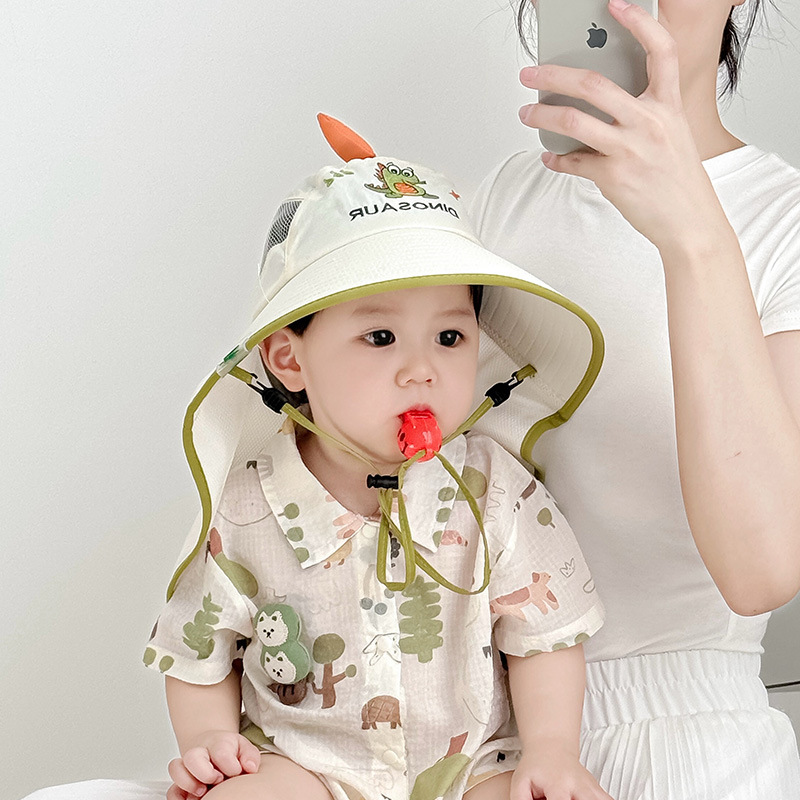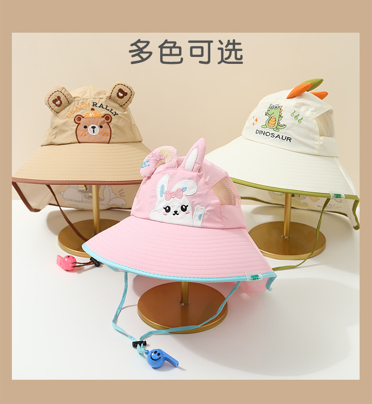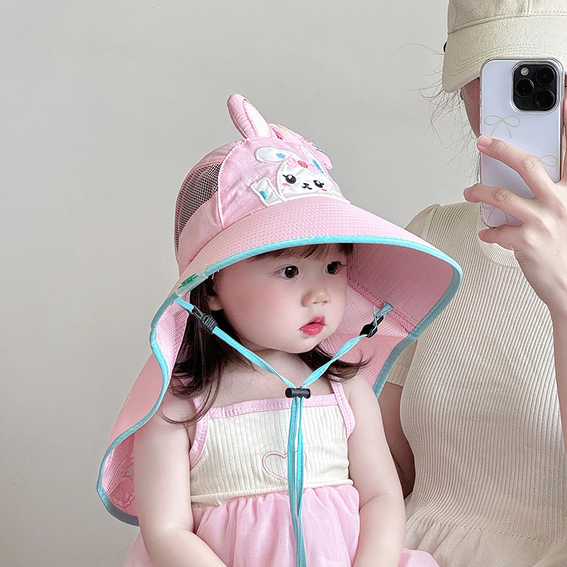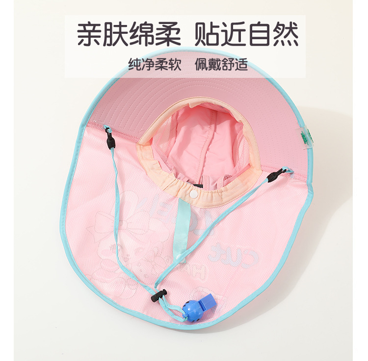 儿童帽子春夏季薄款透气网眼大帽檐防晒护脖渔夫帽男女宝宝披肩帽