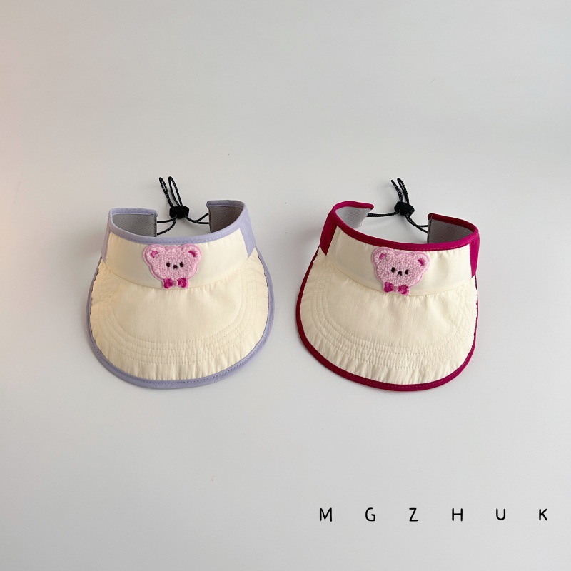 自制小熊空顶-玫红边+参考6个月-2岁(头围43-50cm)+以头围为准 抽绳可调节
