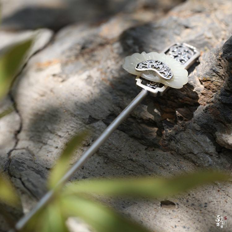 S925银女款时尚气质民族风和田玉蝶恋花长短款如意发簪