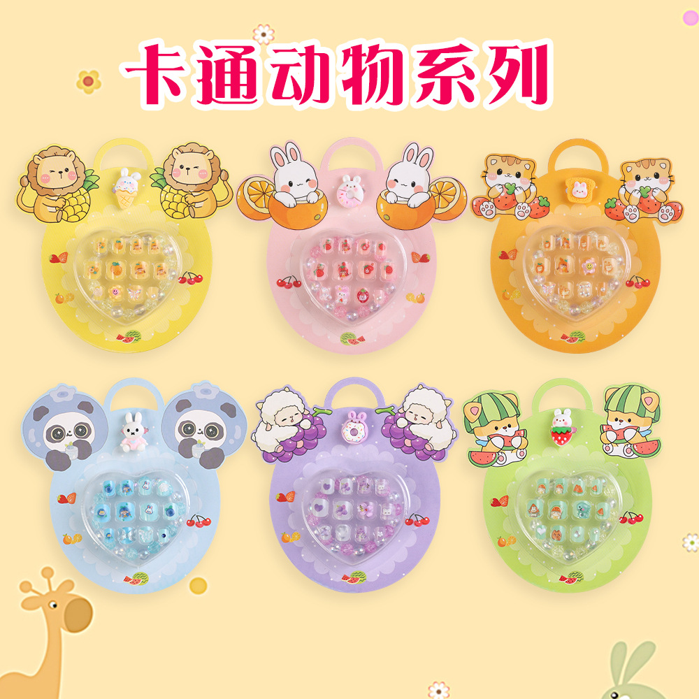 美甲儿童穿戴甲卡通动物背胶甲片成品假指甲带钻指甲贴片指甲片
