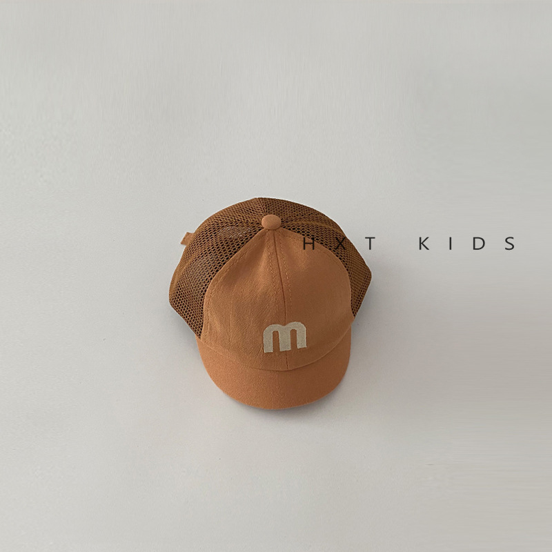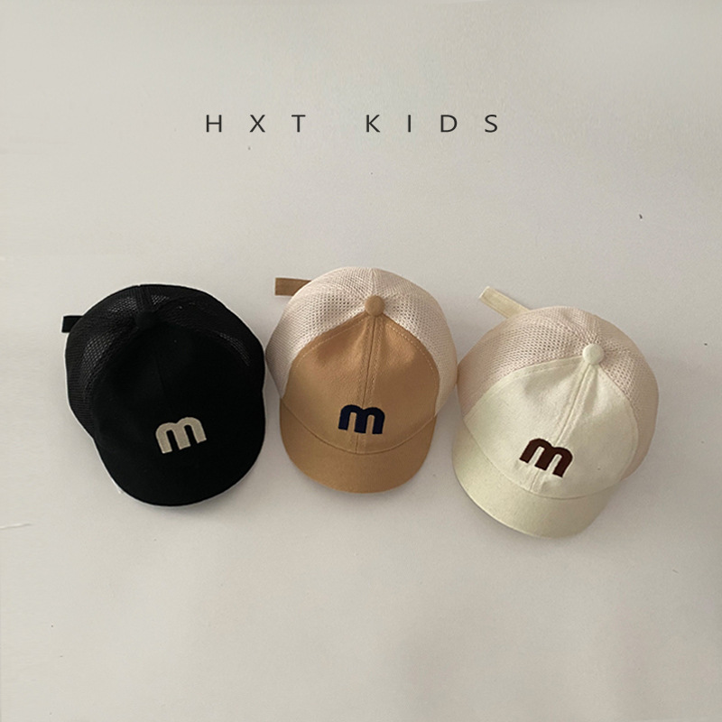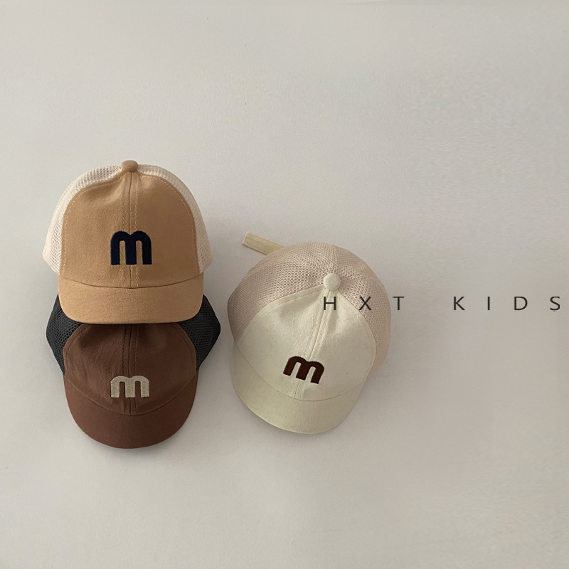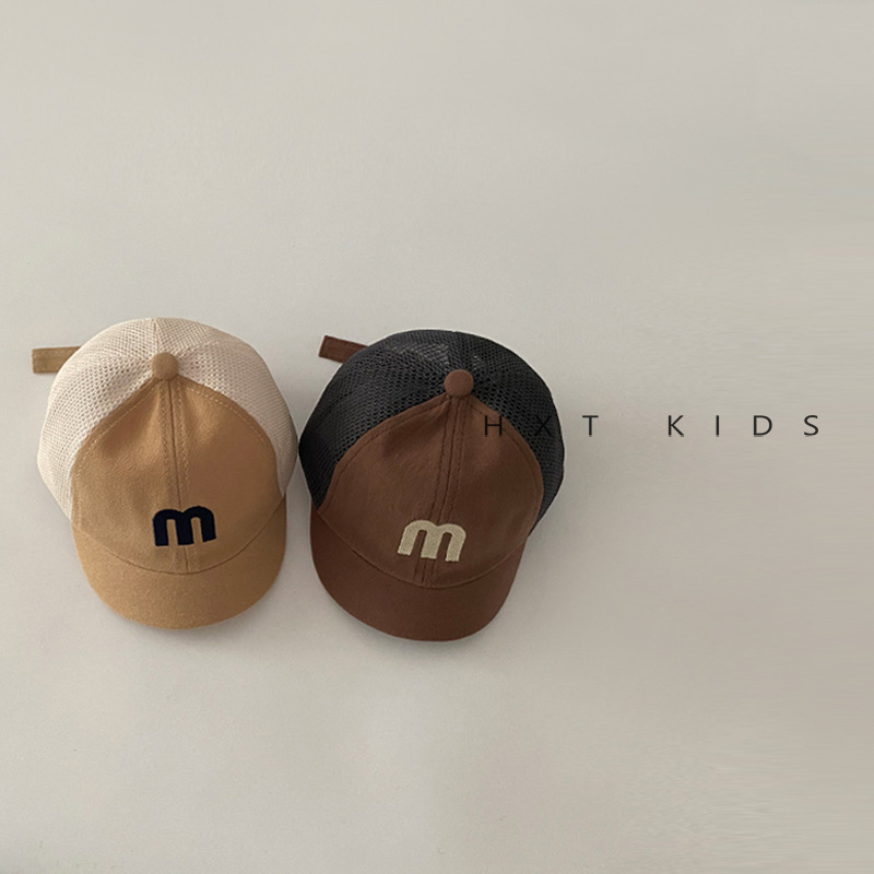 婴儿鸭舌帽夏季半网面透气字母刺绣软檐遮阳帽子婴幼儿宝宝棒球帽