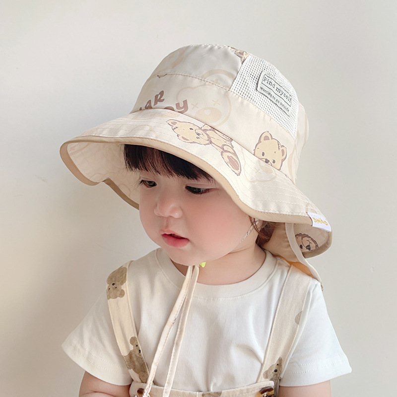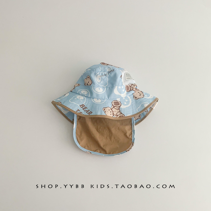 儿童防晒帽防紫外线宝宝遮阳帽太阳帽男童女童夏季护脖渔夫大帽檐