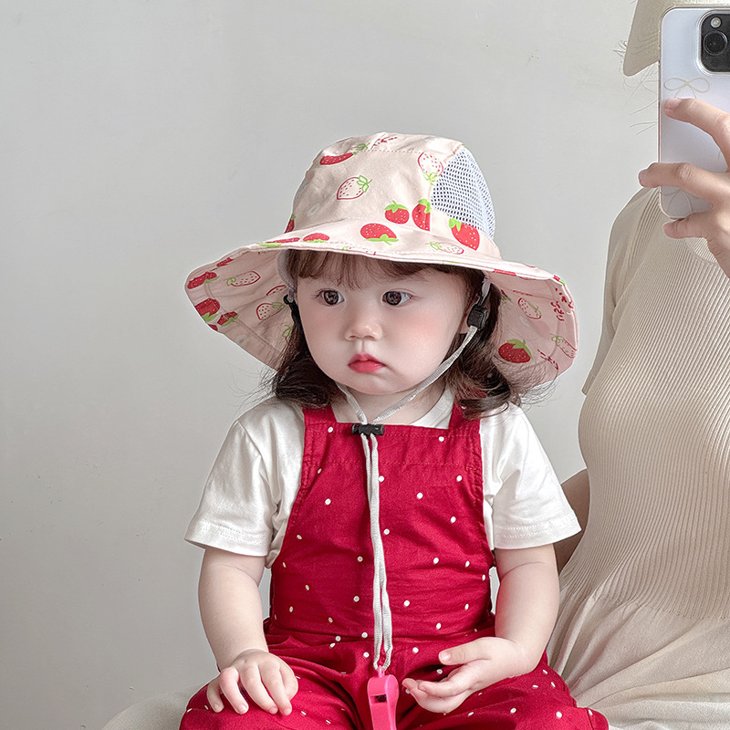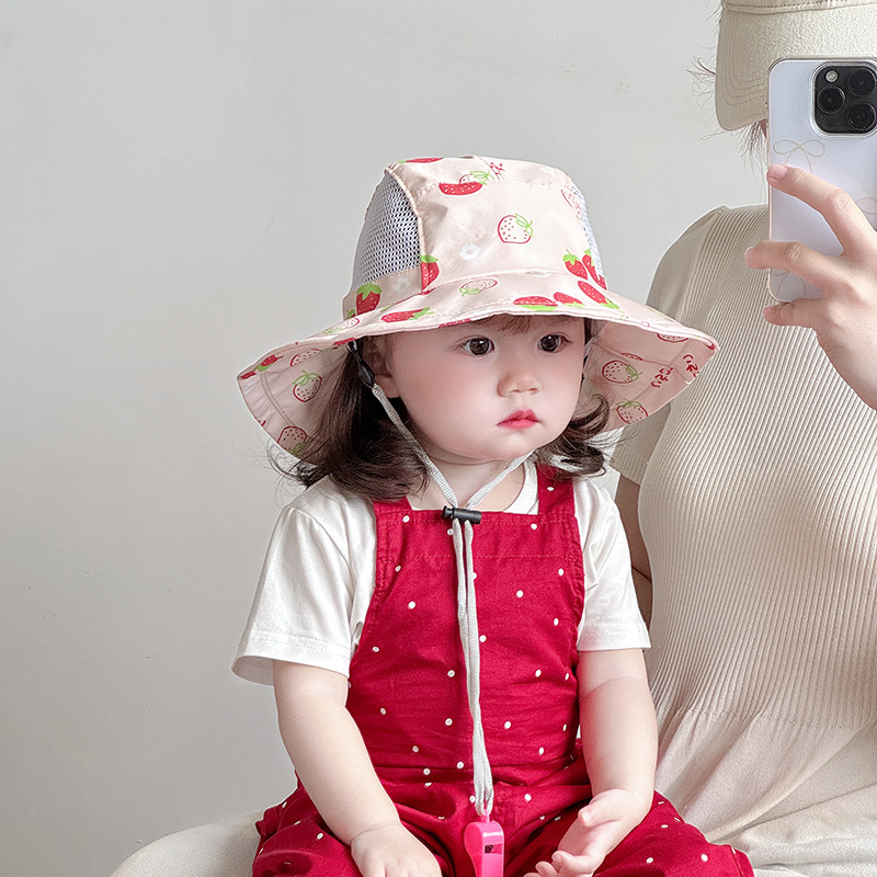 儿童帽子夏季薄款透气网眼大帽檐遮阳防晒渔夫帽男女宝宝出游盆帽