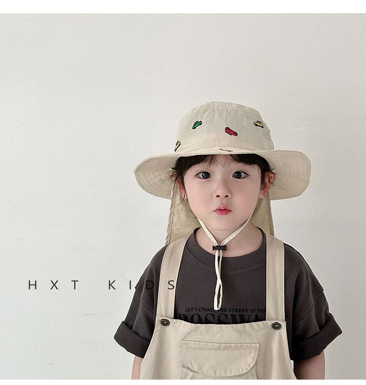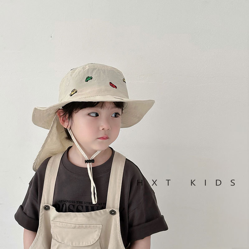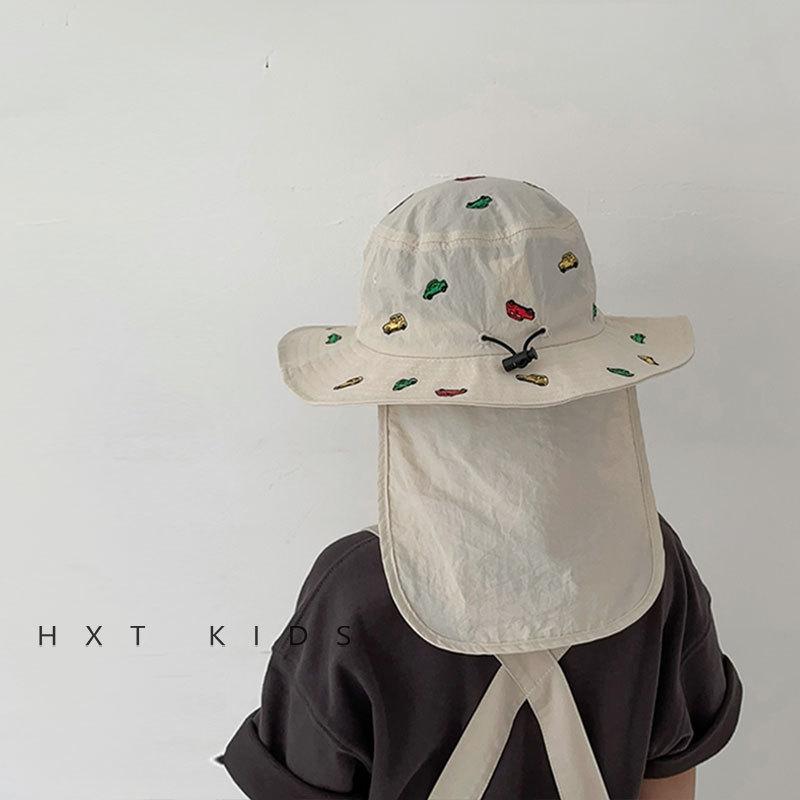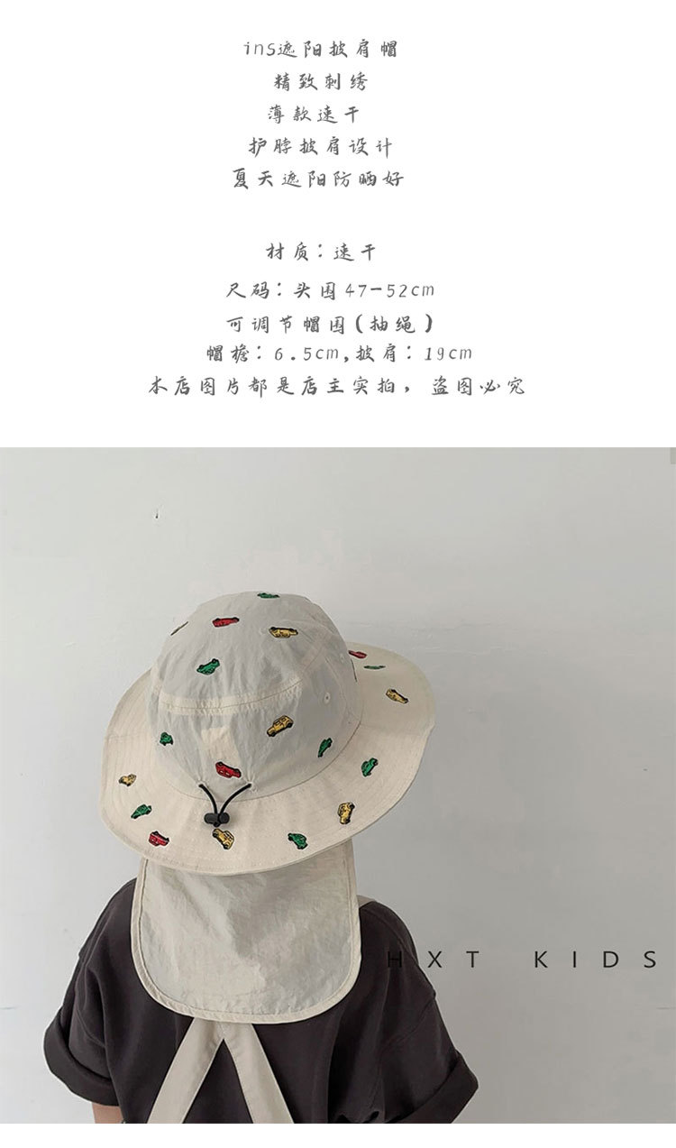 儿童防晒帽夏季薄款小汽车防紫外线披肩帽男女童宝宝夏天遮阳帽潮