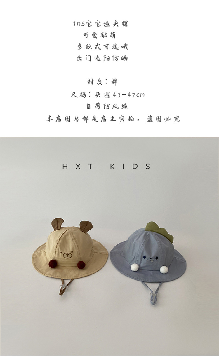 婴儿渔夫帽超萌可爱小恐龙春秋大帽檐遮阳帽子婴幼儿宝宝防晒帽夏