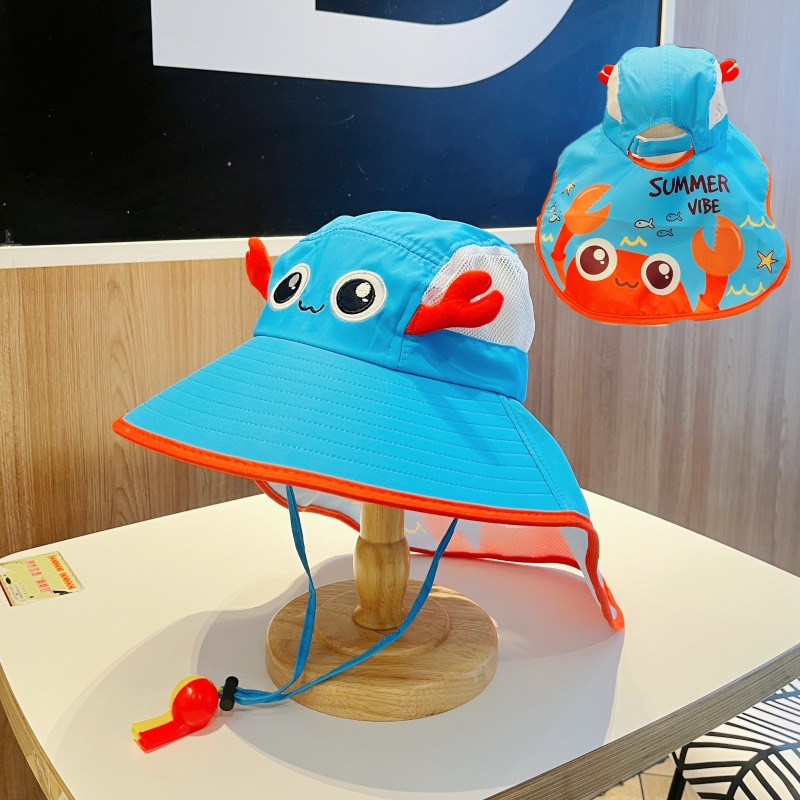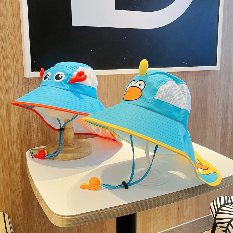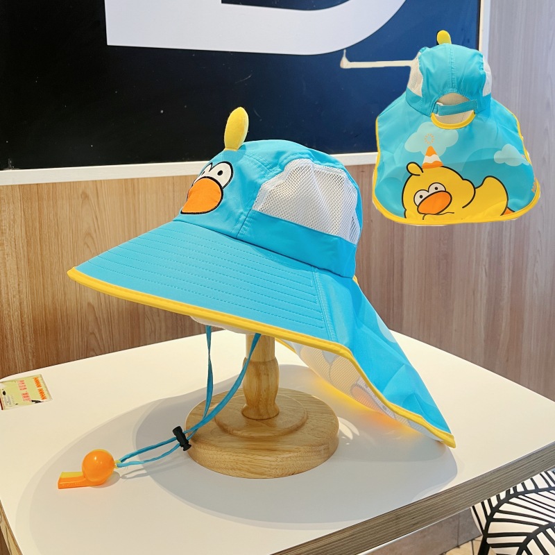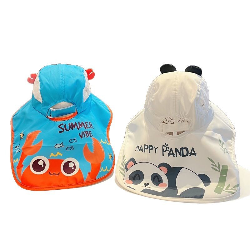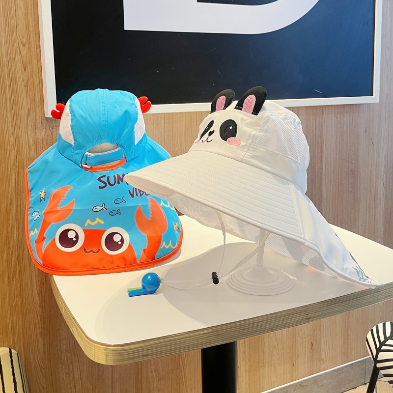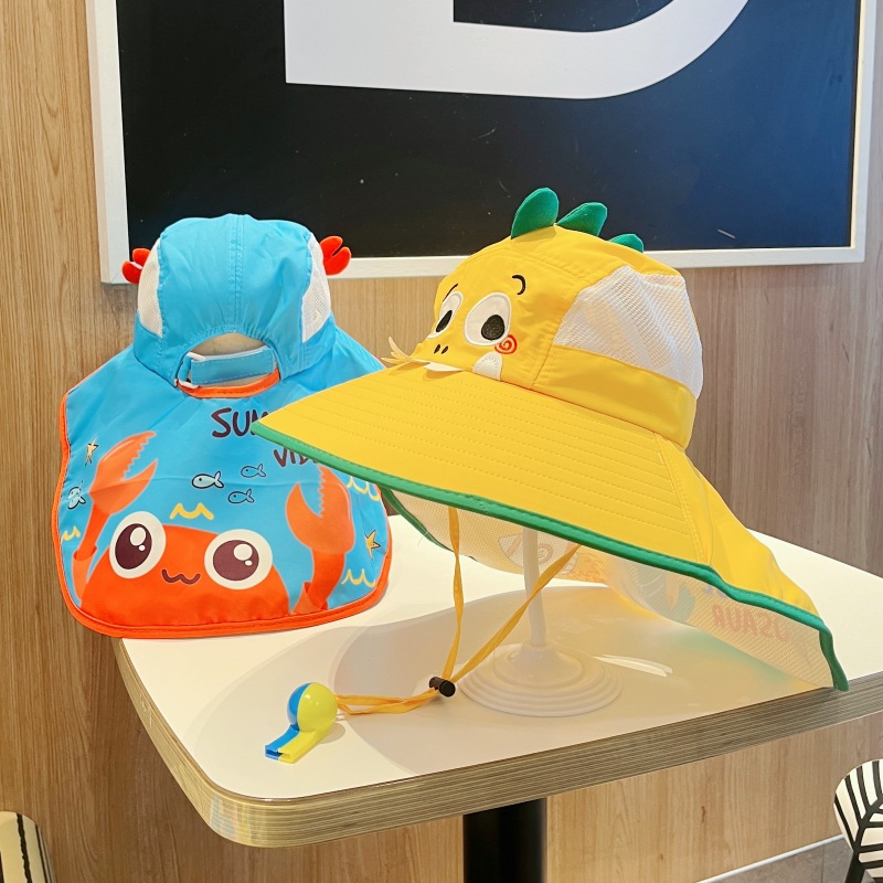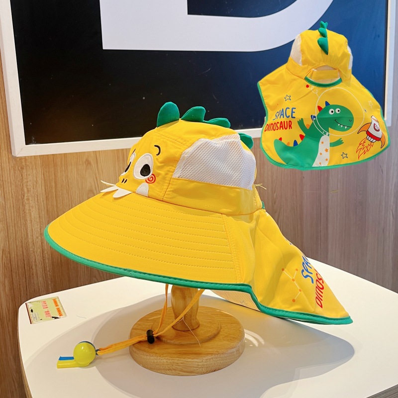 儿童遮阳帽夏天防紫外线宝宝防晒帽洋气恐龙男女童护脖披肩渔夫帽