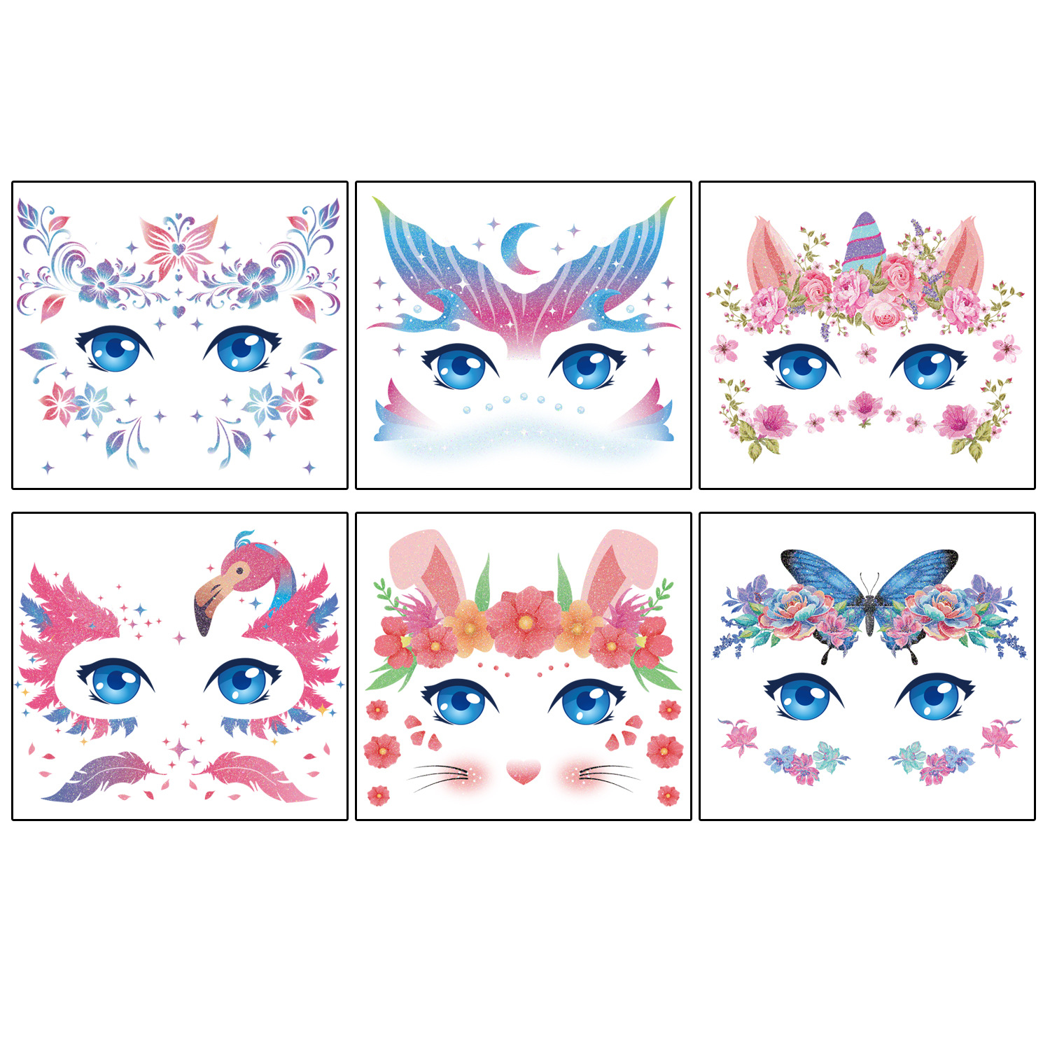 跨境新款动物面具脸贴六一儿童节表演演出卡通兔子蝴蝶妆容脸贴纸