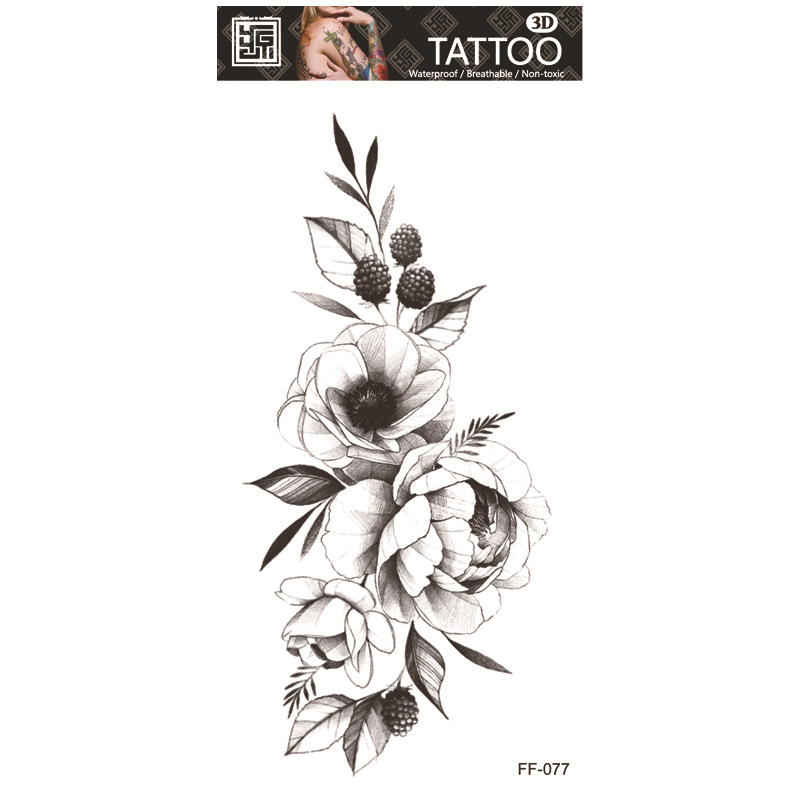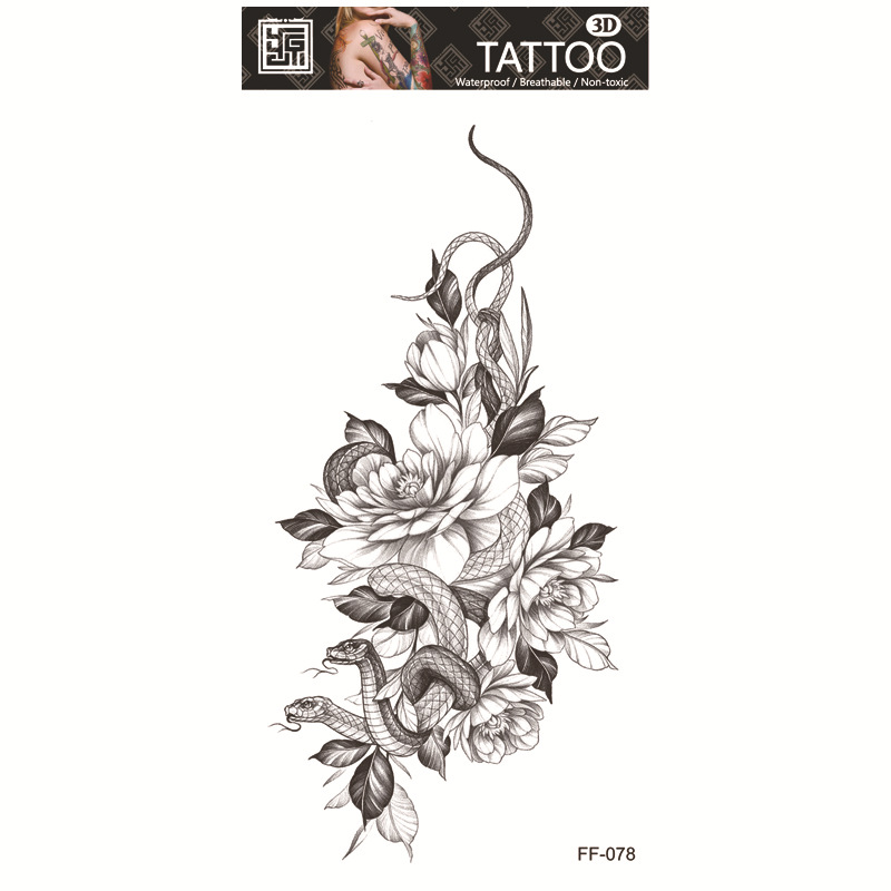 源华素花纹身贴新款防水纹身贴逼真社会玫瑰工厂批发暗黑系纹身贴