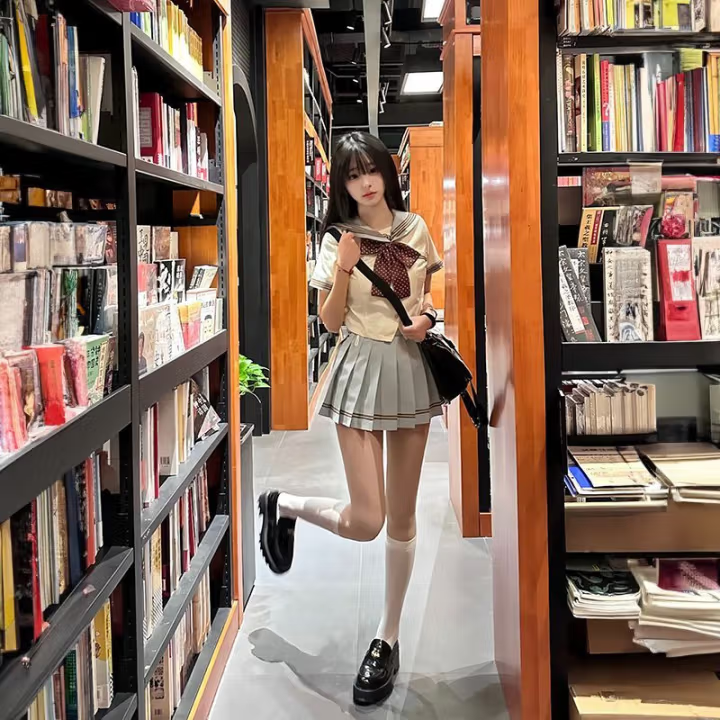 - 绀粉[短袖上衣+绀裙粉襟线42+领