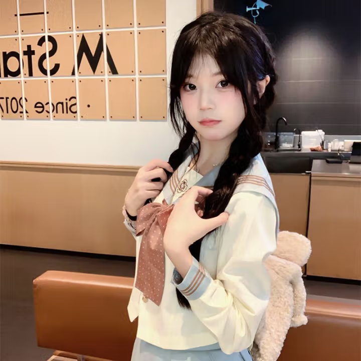 - 绀粉[长袖上衣+绀裙粉襟线42+领