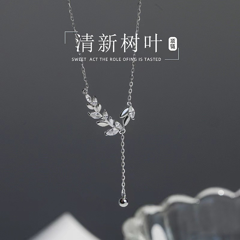 闪钻树叶麦穗项链女ins小众设计潮轻奢高级感清新感百搭锁骨链