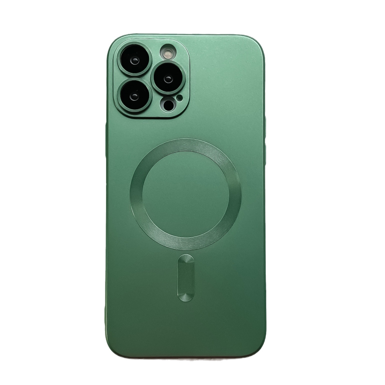 适用磁吸苹果15手机壳液态金属漆iPhone14promax带镜头膜保护套13