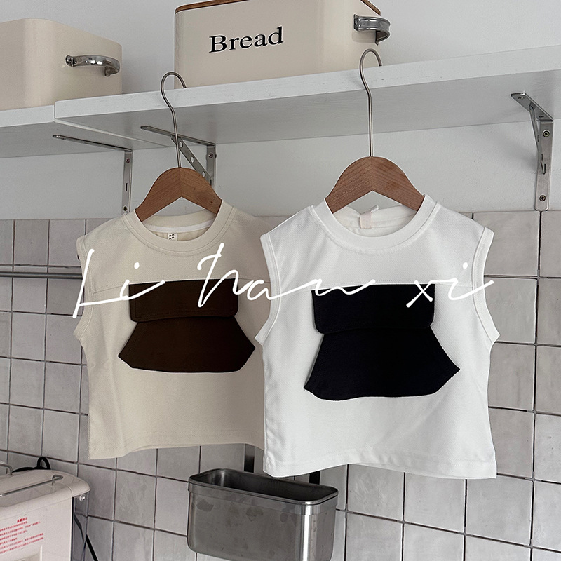 儿童背心24夏新款男女童个性大口袋T恤无袖针织坎肩宝宝休闲上衣