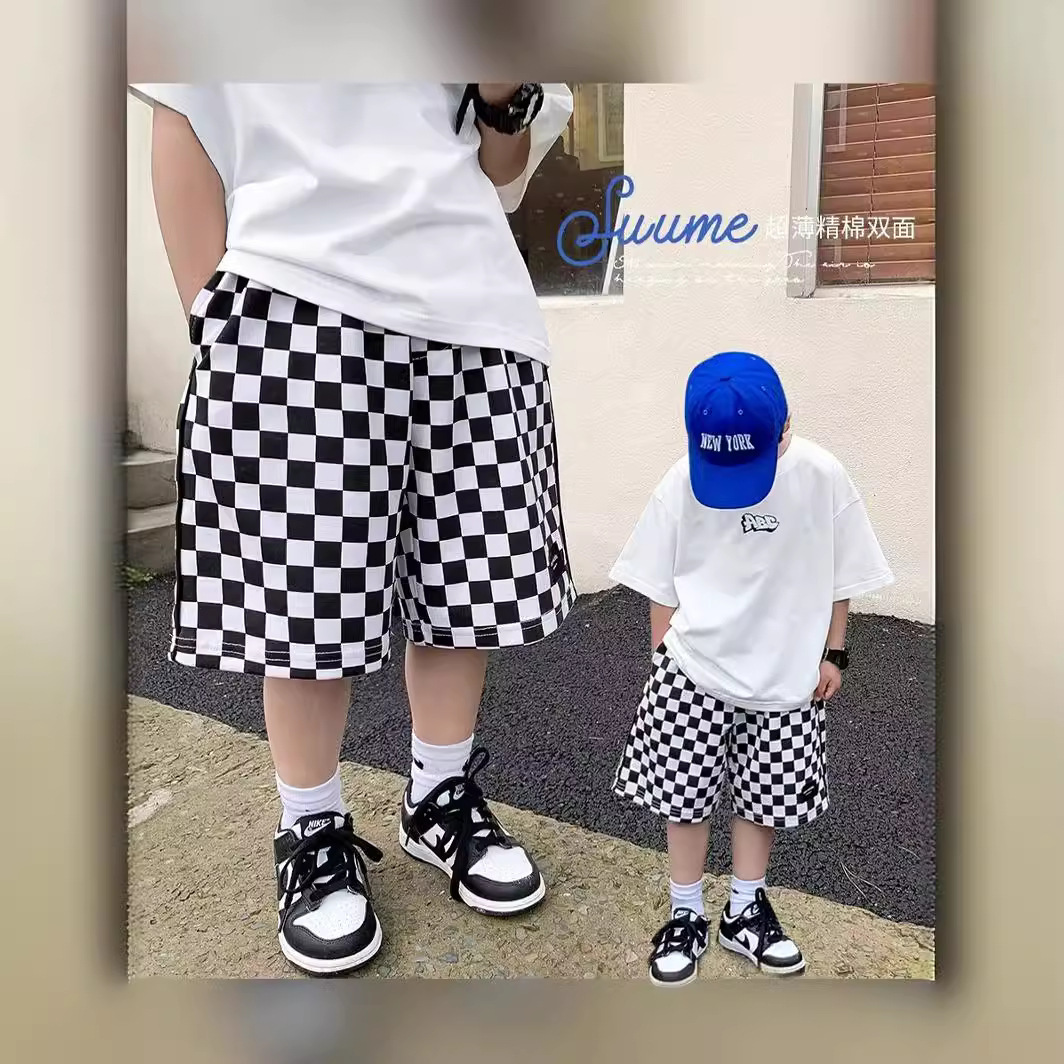 儿童格子短裤夏季韩版潮牌五分裤男童休闲七分中裤运动沙滩裤外贸