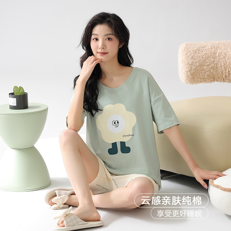 睡衣女夏季纯棉薄款短袖短裤新款可爱甜美休闲全棉家居服套装