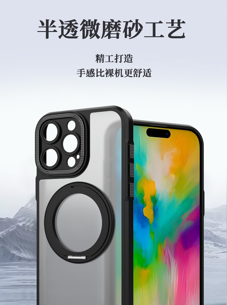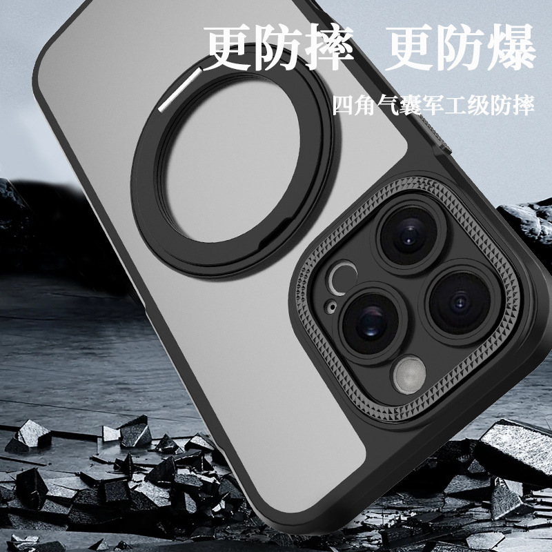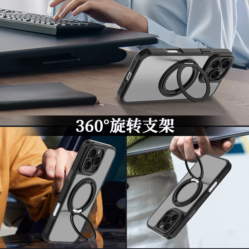 适用苹果系列手机壳360旋转支架iPhone16磨砂磁吸壳三星S25手机壳
