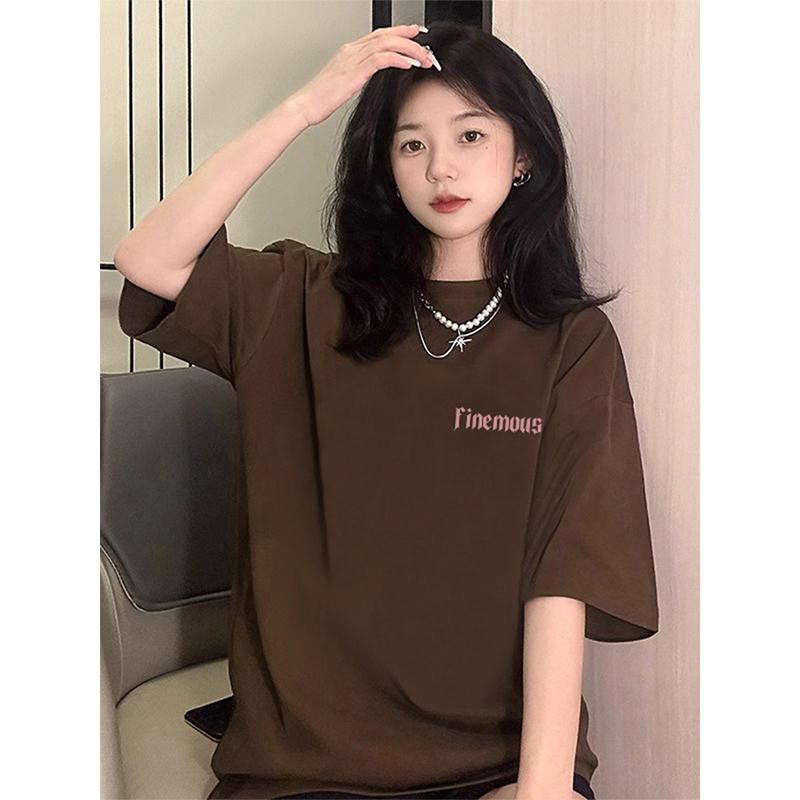 咖啡色短袖潮牌t恤情侣装新款女装宽松休闲欧货独特别致上衣