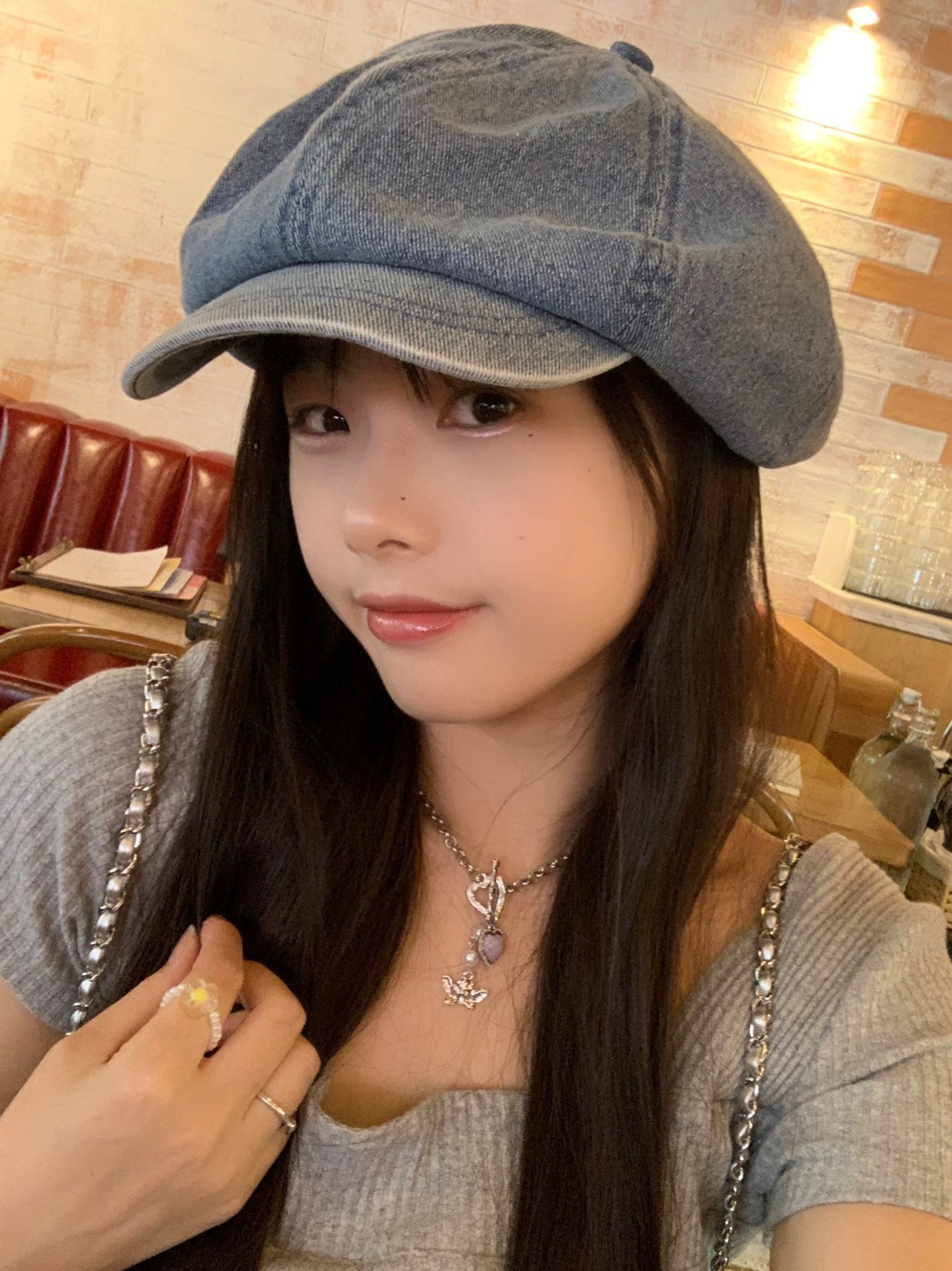 韩版复古牛仔大头围贝雷帽女显脸小百搭画家云朵帽文艺八角帽子潮