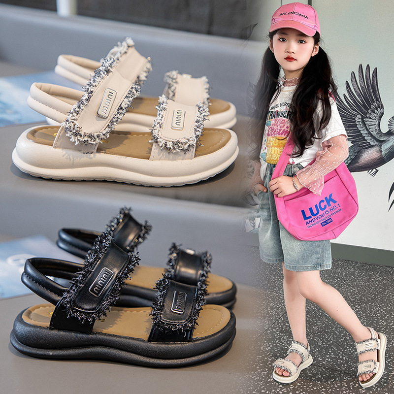法式小香风拖鞋女童2025春夏季新款网红时尚水钻一字平底沙滩凉拖