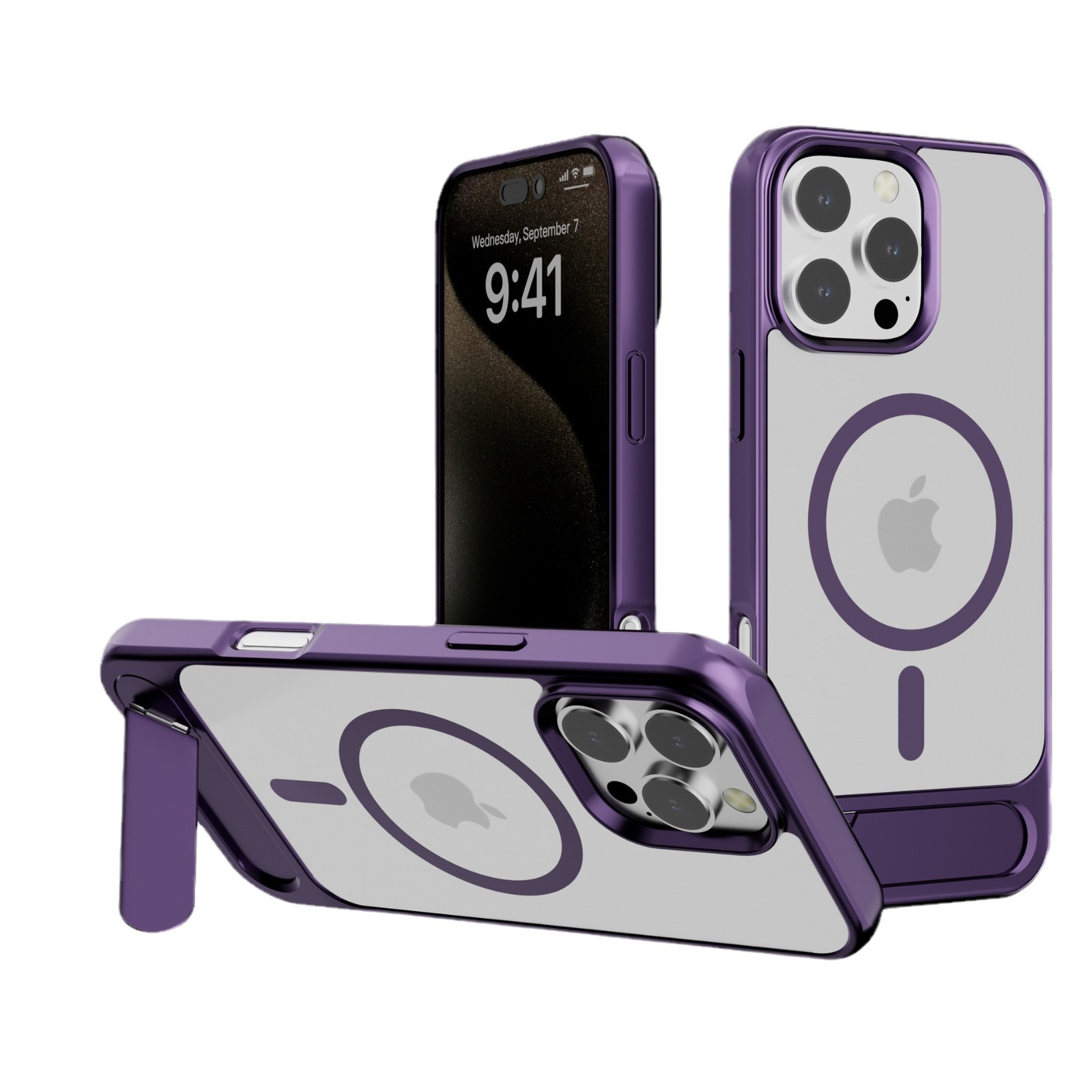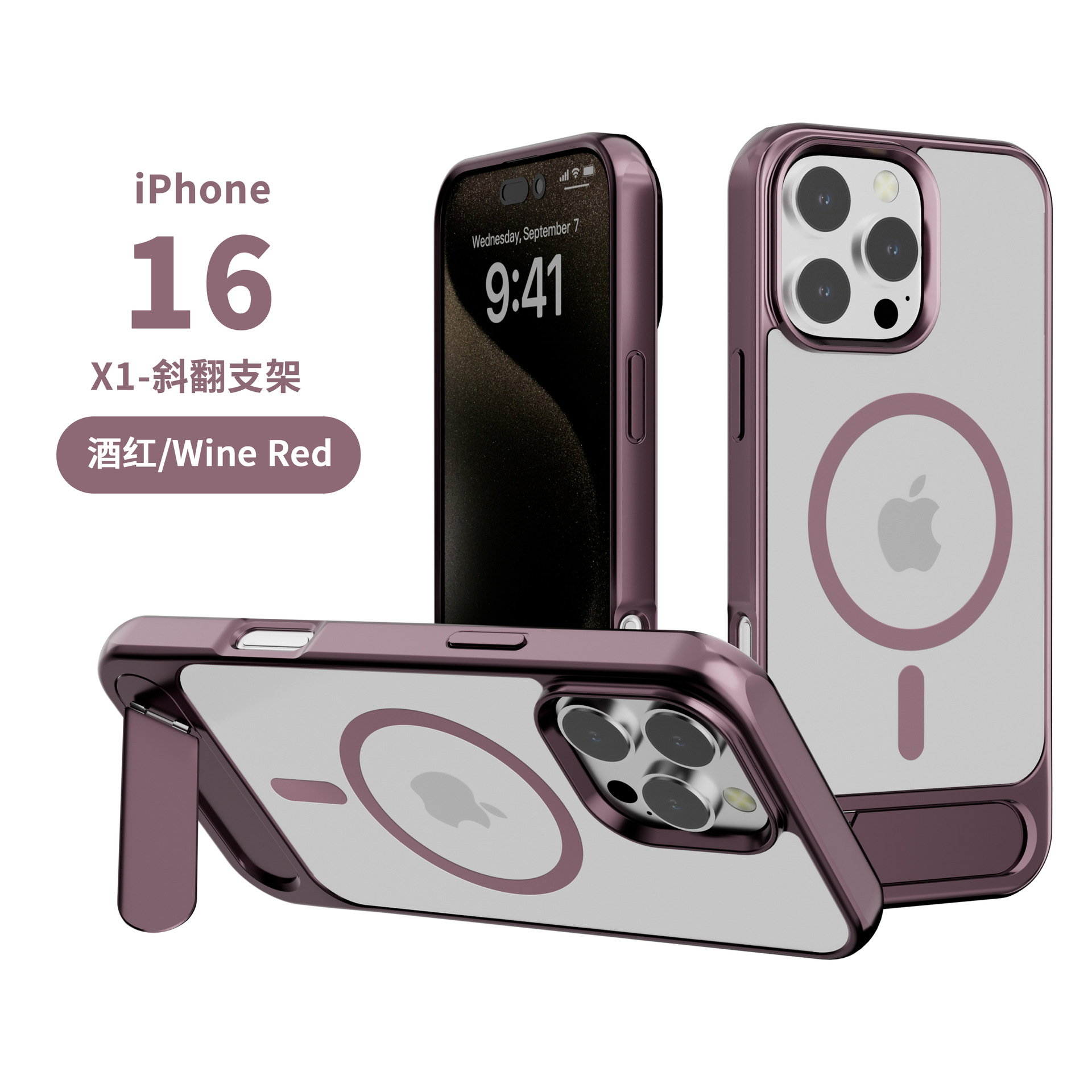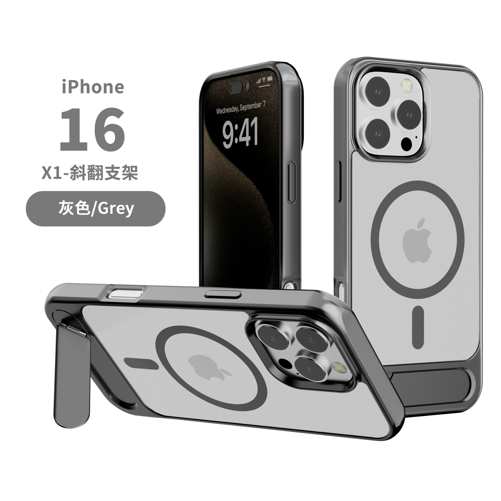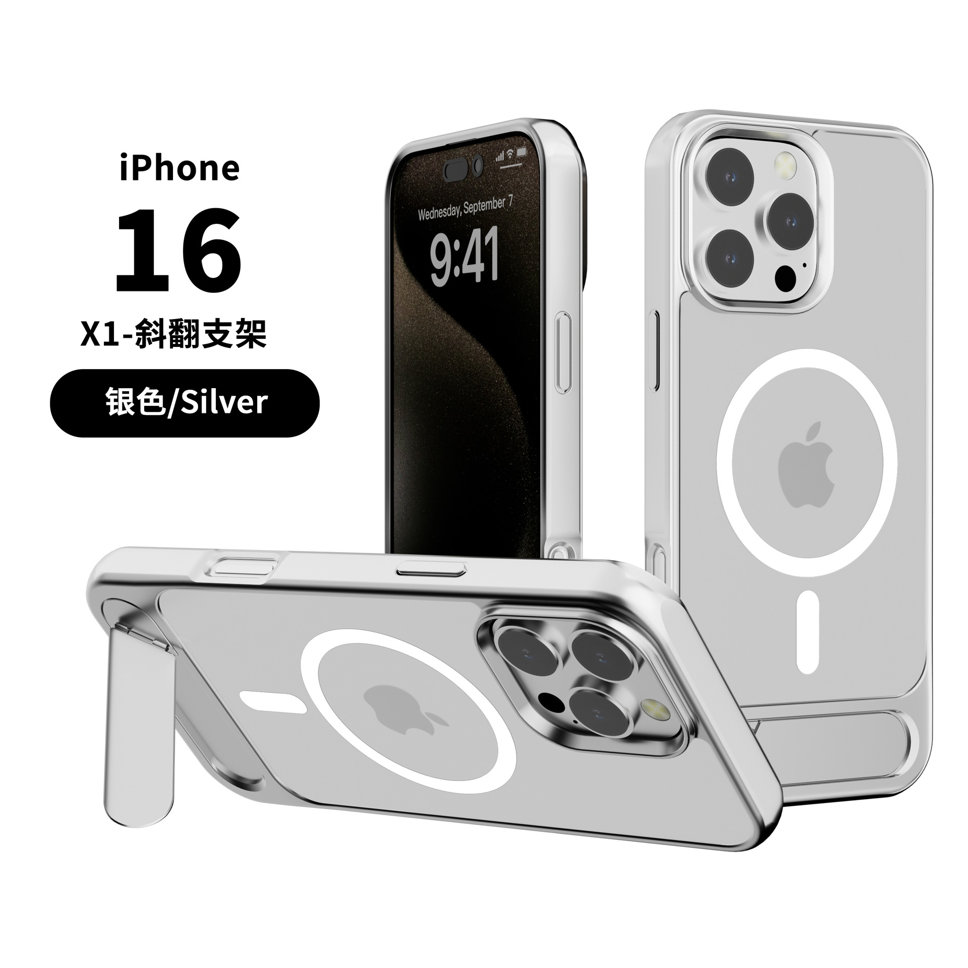 适用苹果16pro磨砂15磁吸手机壳喷油iphone14隐形斜方支架手机套