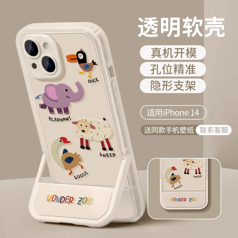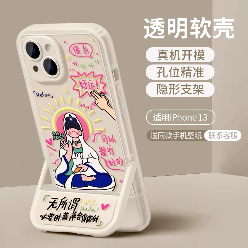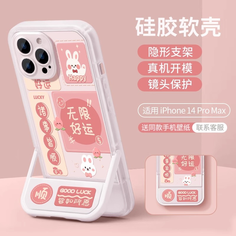 一体支架i16promax苹果手机壳13新款phone15pro小众16透明保护套