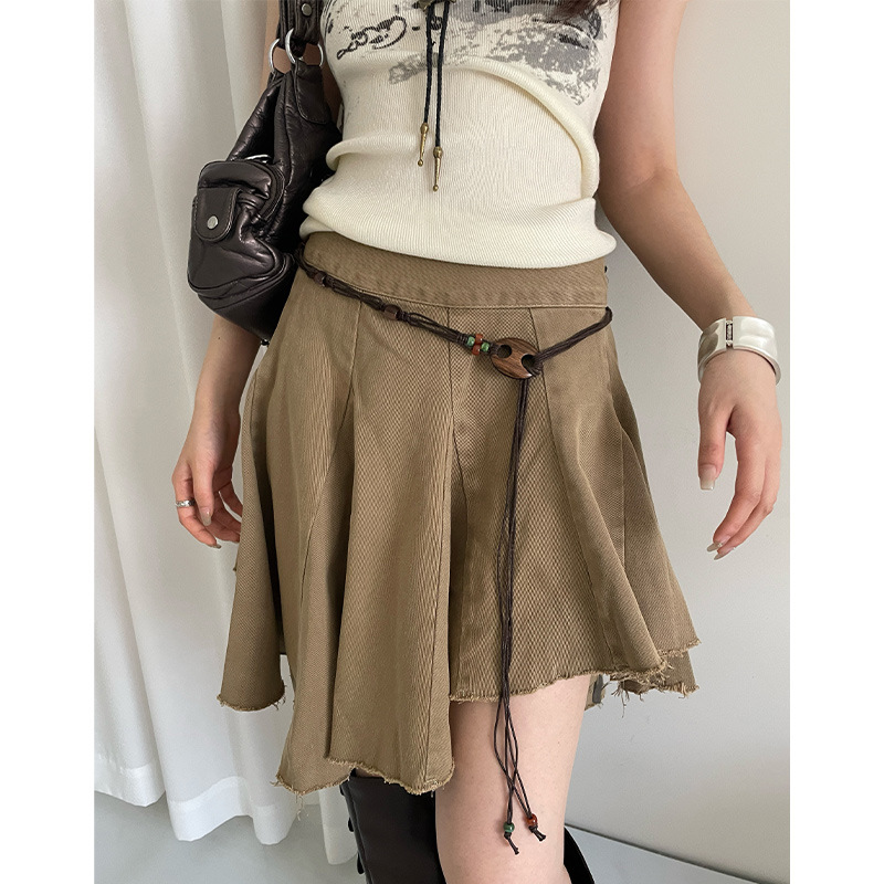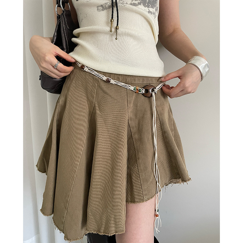 咖啡色毛呢半身裙女春季小个子百褶短裙新款设计感高腰a字裙