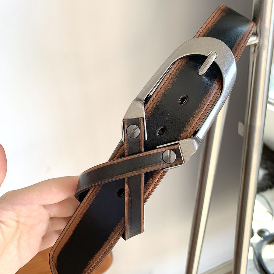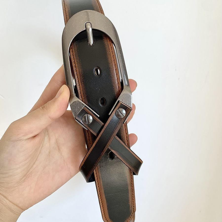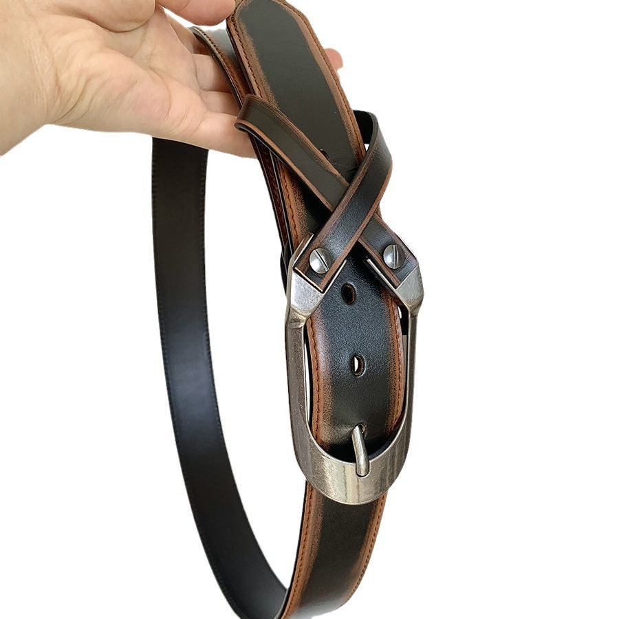 网红同款欧美ins风棕色PU腰带重磅异形交叉皮带中性风配饰时髦