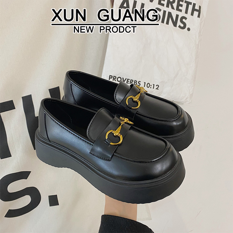 厚底增高小皮鞋女春季新款英伦风百搭舒适软底单鞋复古乐福鞋