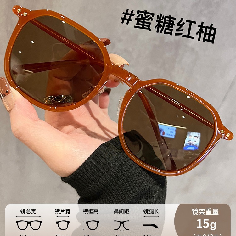 新款韩版奶茶色墨镜女甜美小清新穿搭防晒墨镜TR90超轻圆框太阳镜