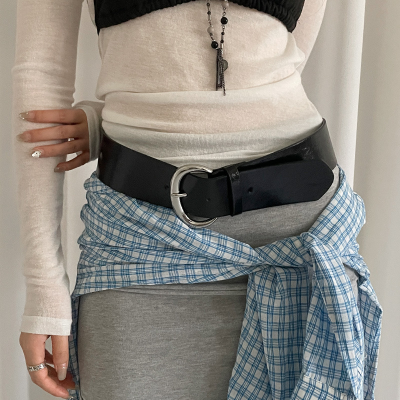2025新款高级感简约黑色腰带女配裙子牛仔裤宽版皮带显瘦百搭腰封