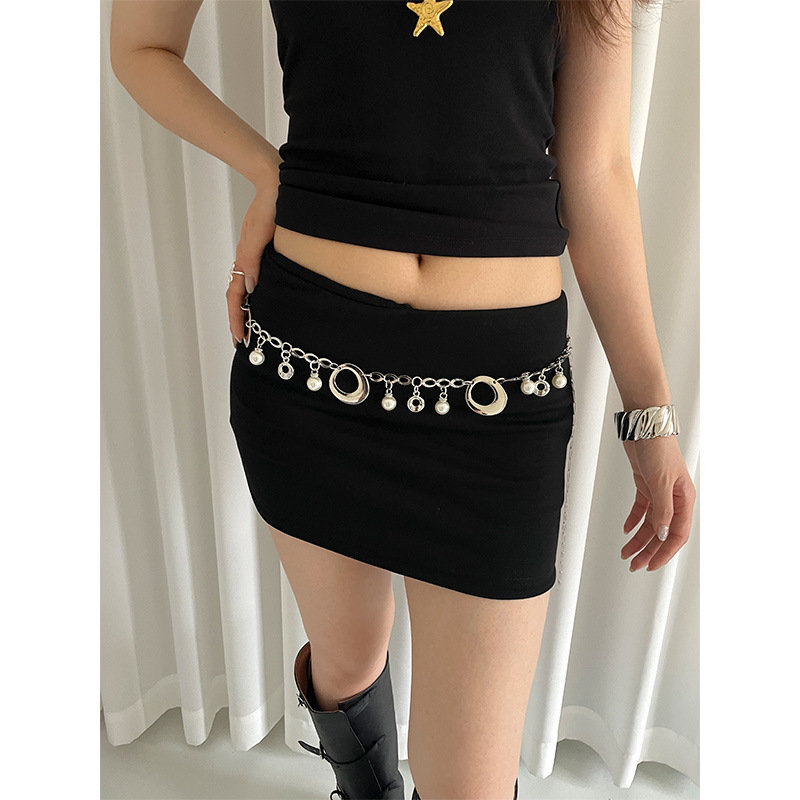复古金属腰链女夏季新款仿珍珠吊坠链条装饰配裙子牛仔裤百搭腰带