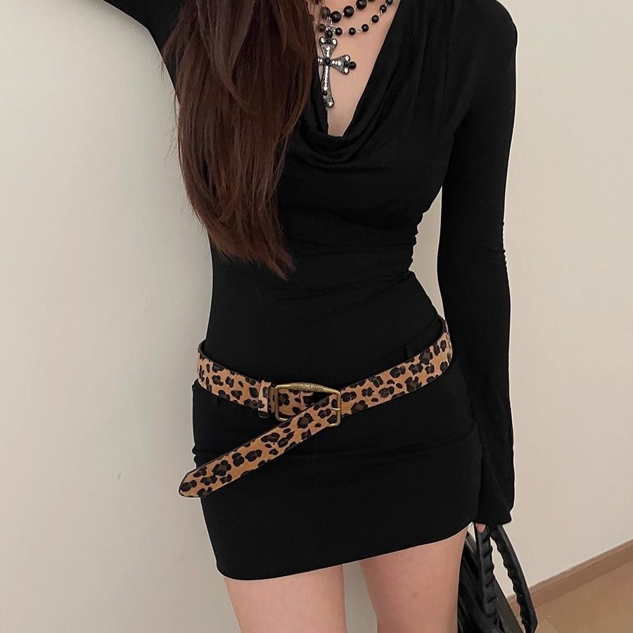 豹纹个性亚文化百搭腰带女辣妹风高级感美式复古时尚针扣皮带装饰