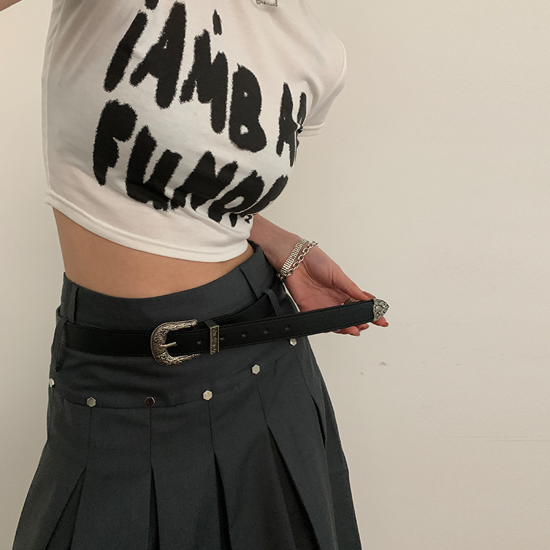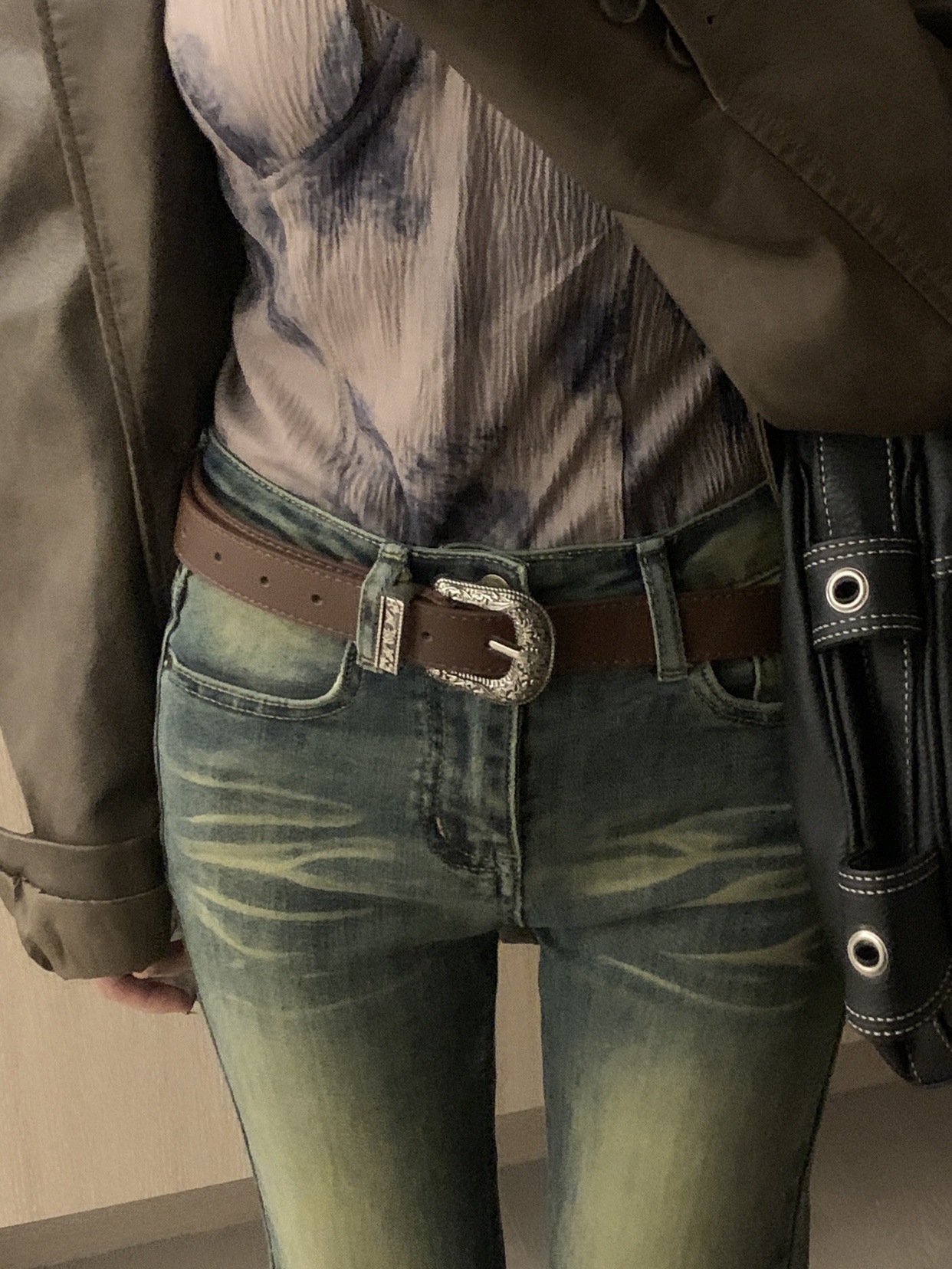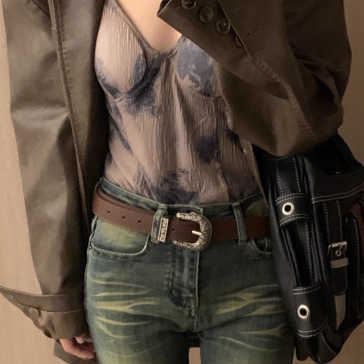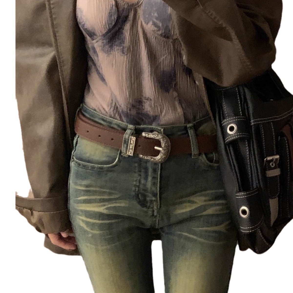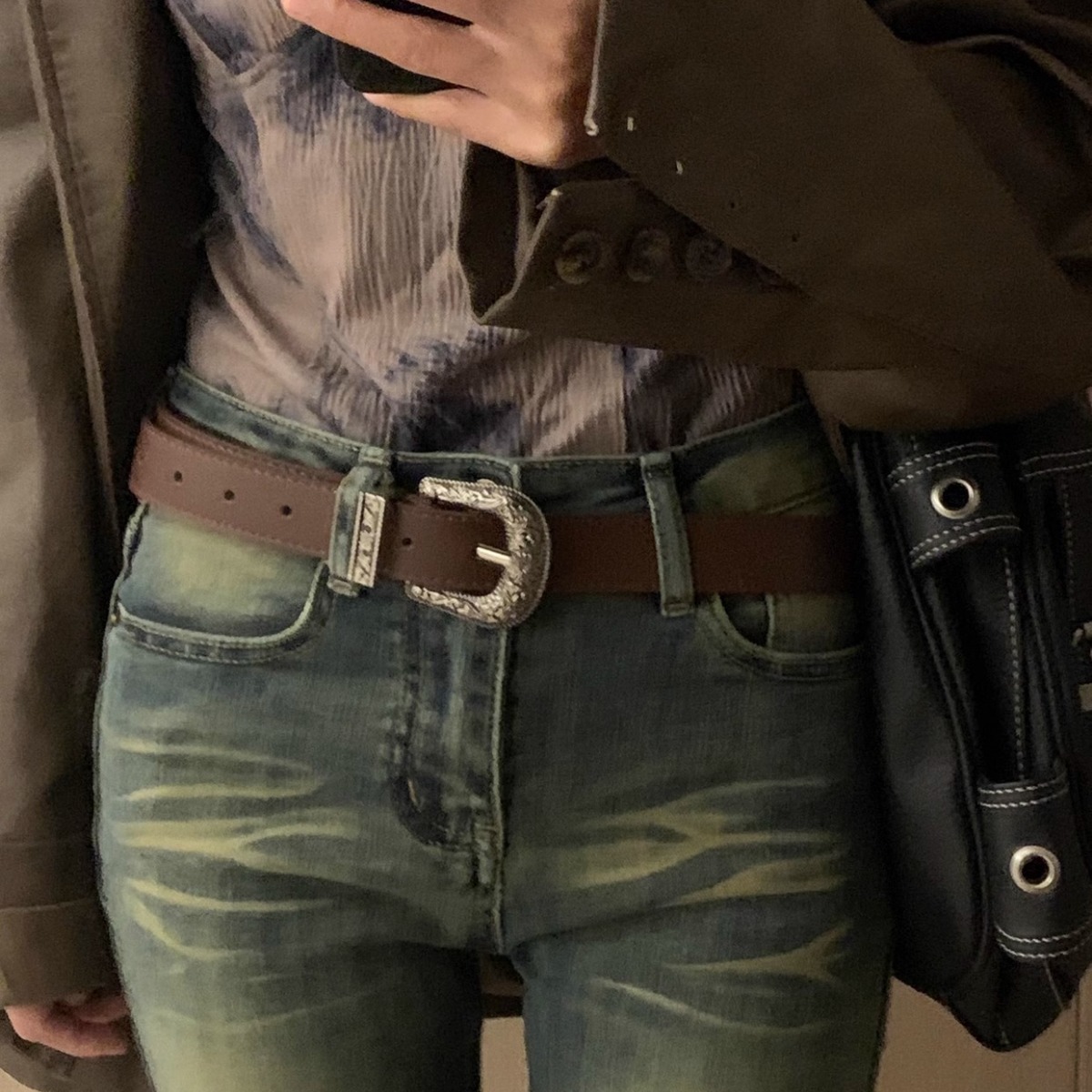 新款 复古老式棕色雕花皮带腰带 气质百搭ins博主同款牛仔腰