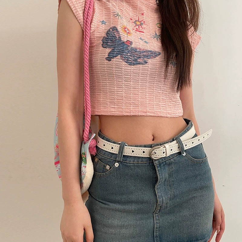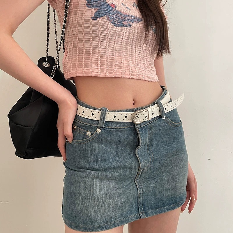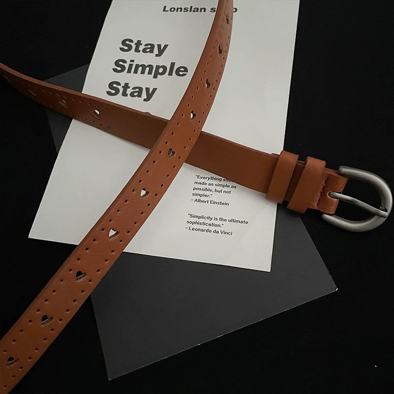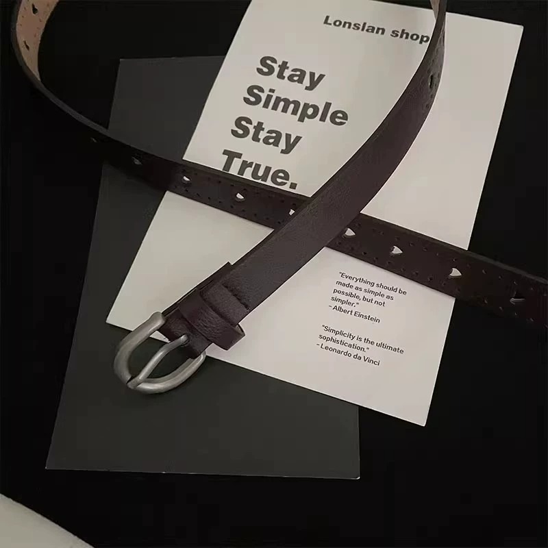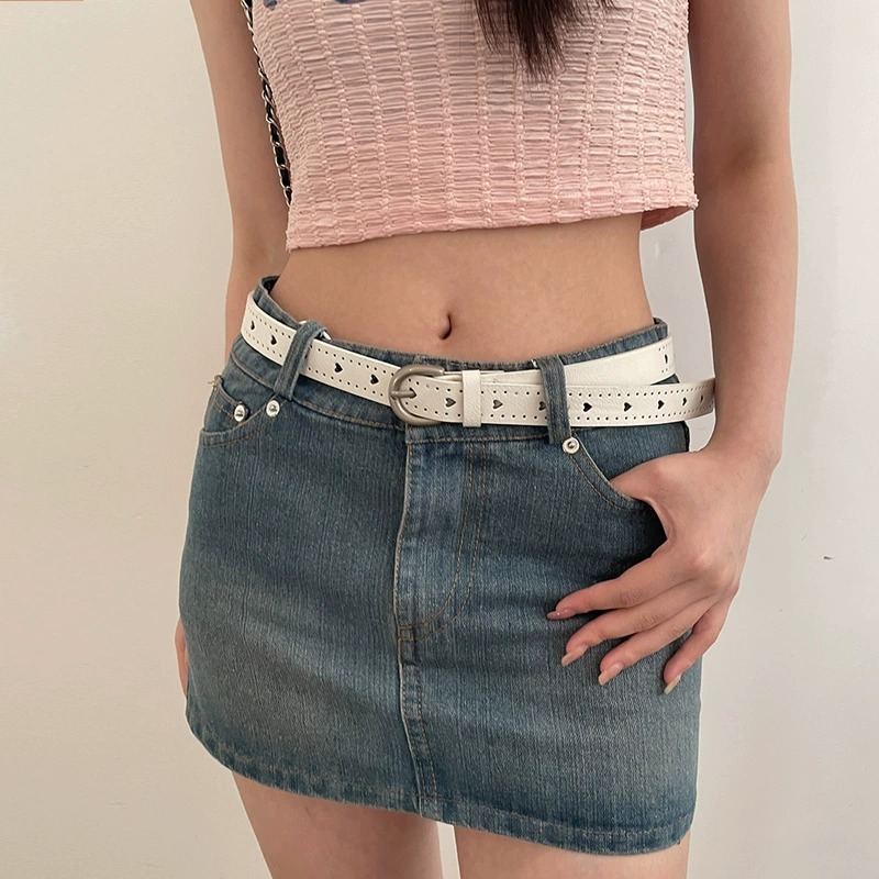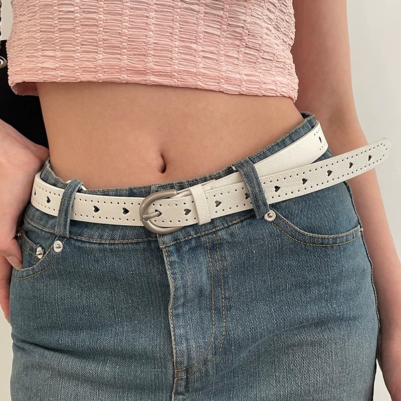 腰带女设计感小众装饰新款夏季爱心镂空白色皮带韩版百搭针扣