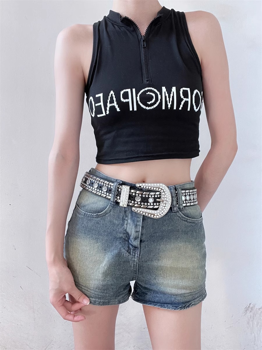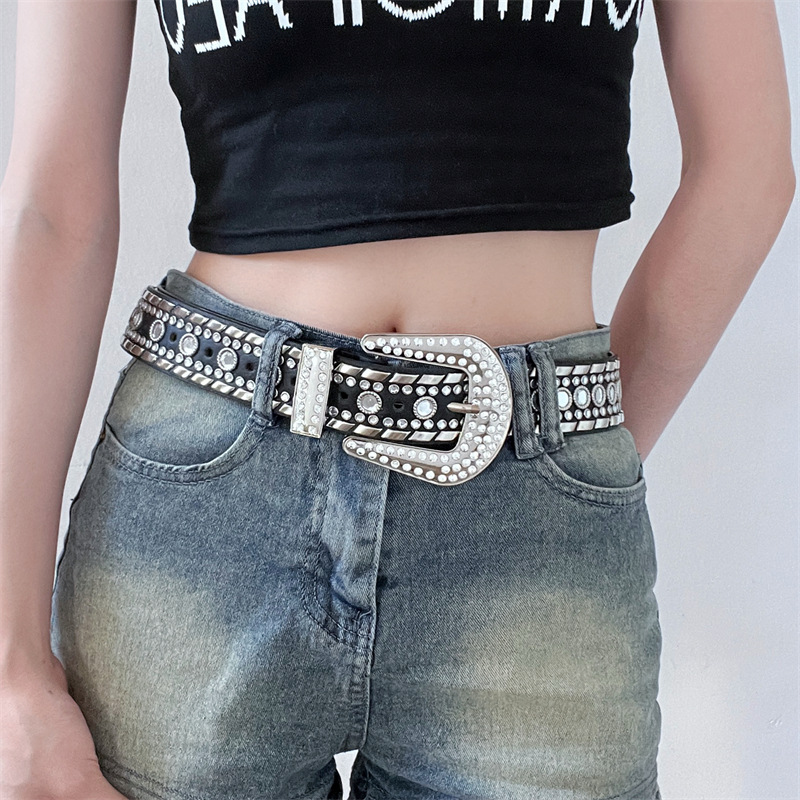 千禧辣妹y2k哥特朋克水钻镶嵌装饰腰带新款重工铆钉欧美百搭皮带