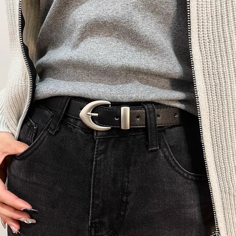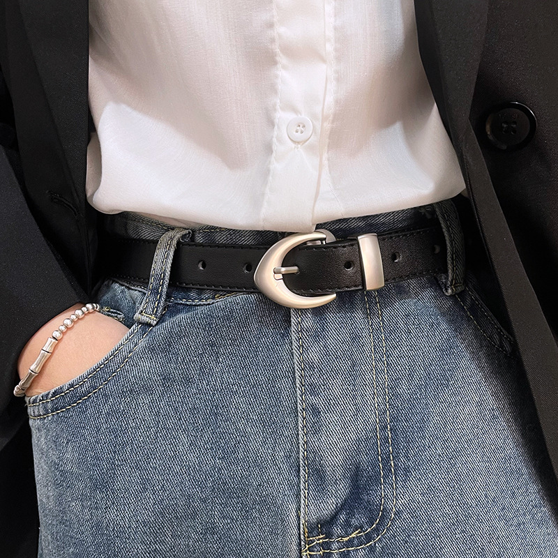 2025新款黑色哑光银高级感腰带女皮带女款配牛仔裤女士裤带潮