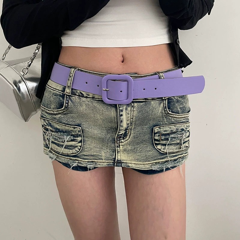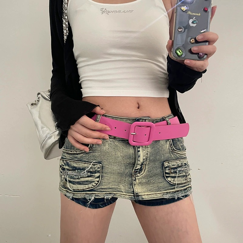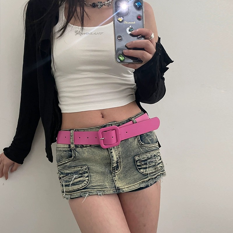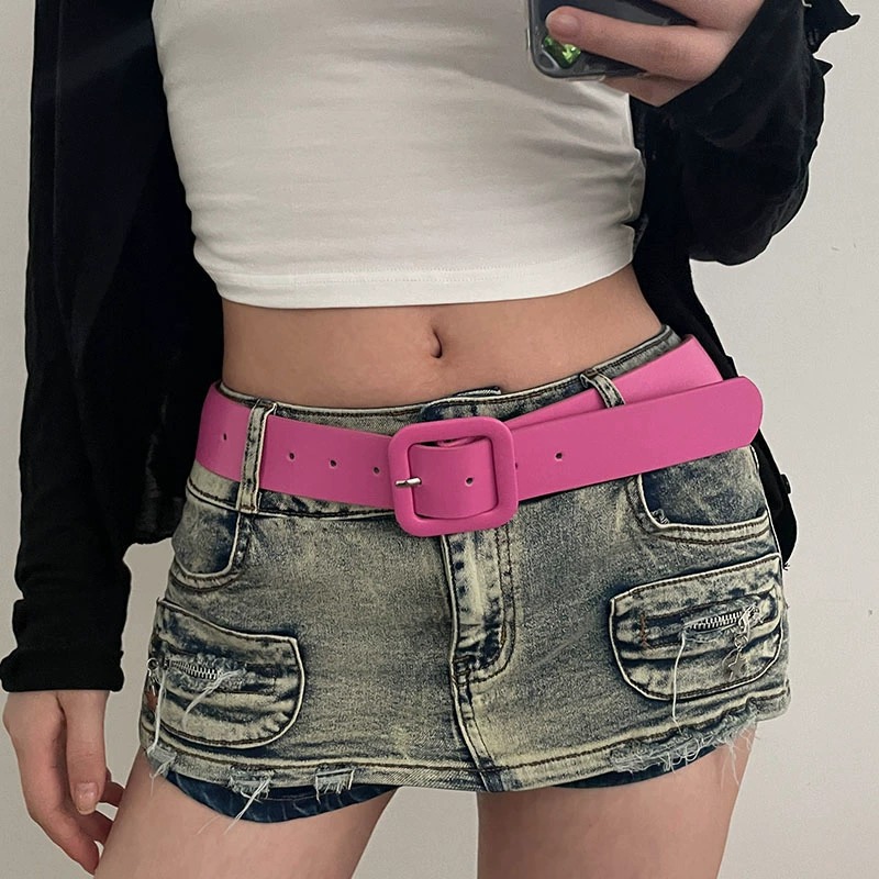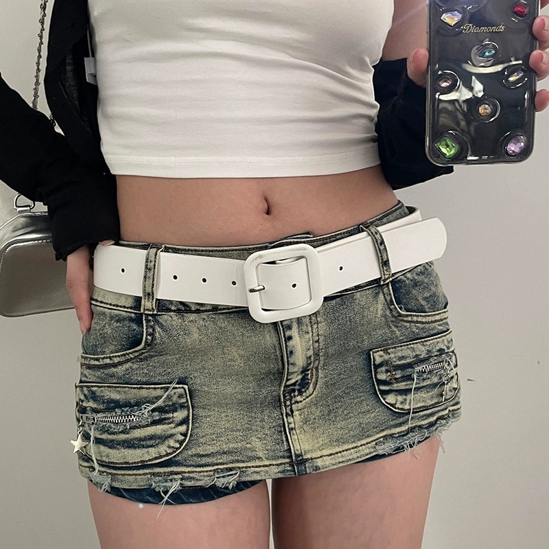 y2k辣妹千禧风白色皮带女新款韩版简约牛仔裤腰带ins风方扣潮