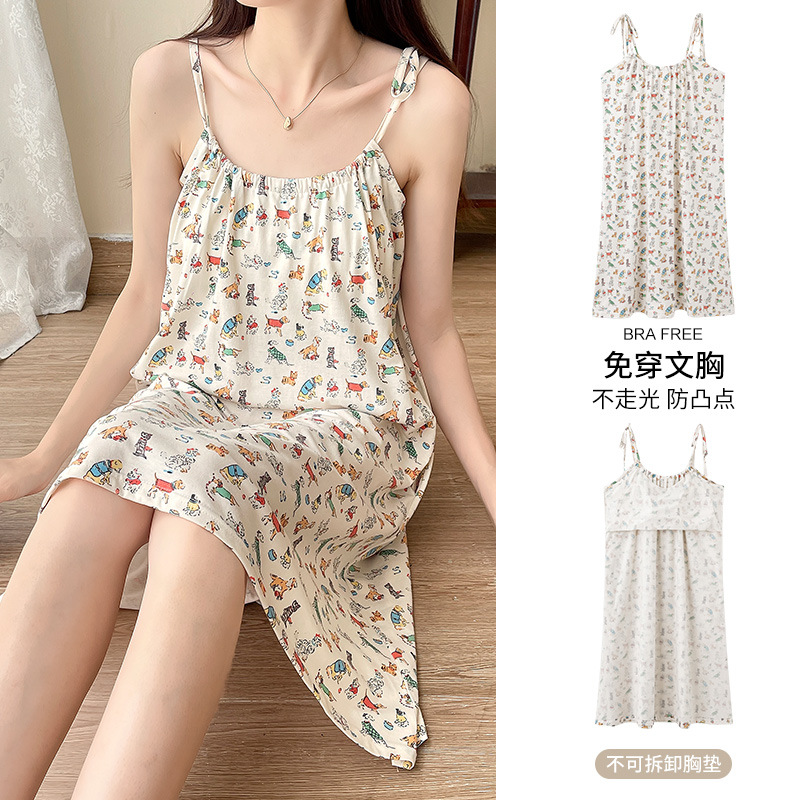 纯棉睡裙女夏季吊带性感可爱纯欲风甜美睡衣韩版宽松家居服
