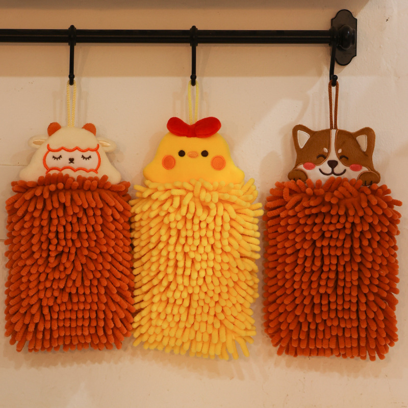 卡通可爱动物雪尼尔擦手巾 家用厨房卫生间儿童吸水布擦手毛巾