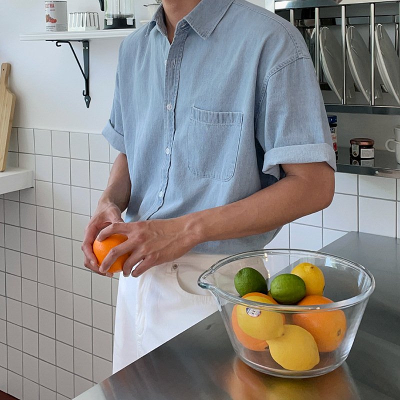 韩版水洗牛仔短袖衬衫男士夏季新款宽松百搭复古翻领半袖衬衣外套