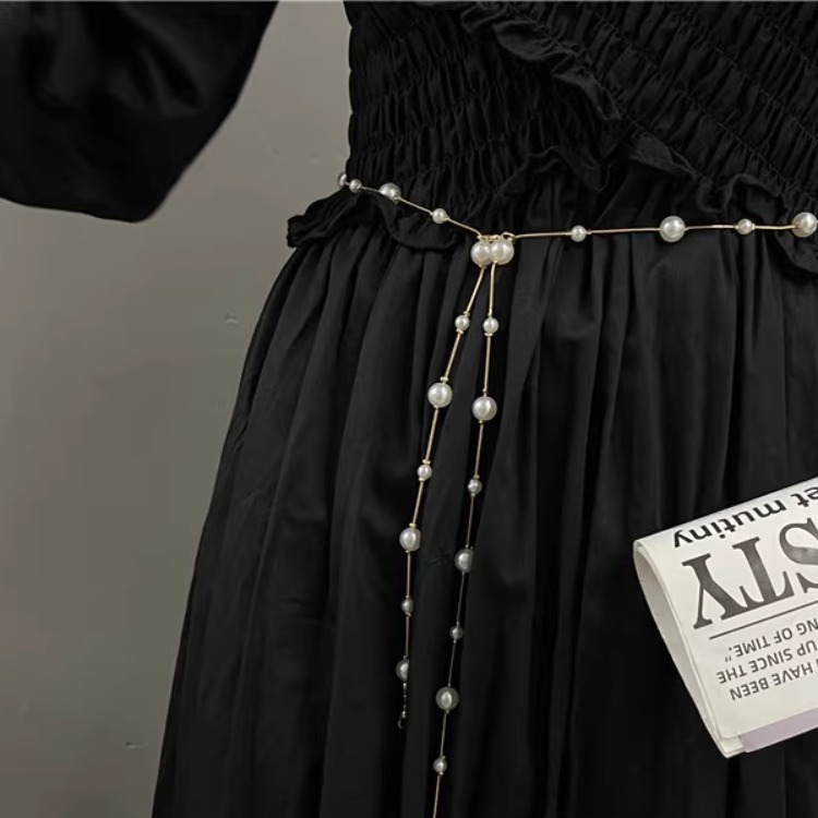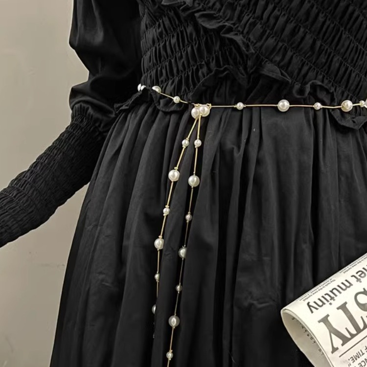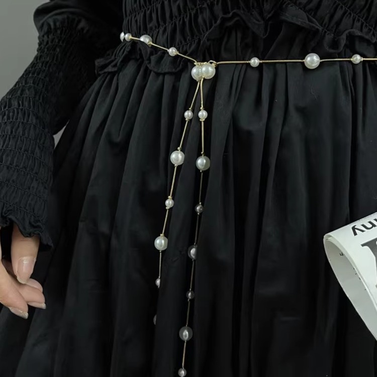 链条细腰带女裙子感连衣高级珍珠裙带收腰配饰腰链百搭装饰腰带夏