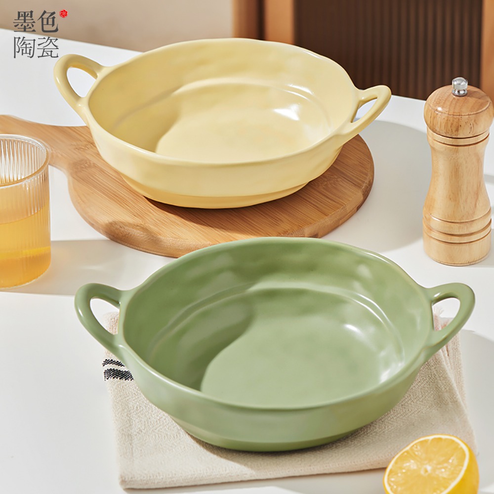 双耳汤碗家用新款陶瓷面碗汤面碗带耳大碗拉面碗奶油风餐具