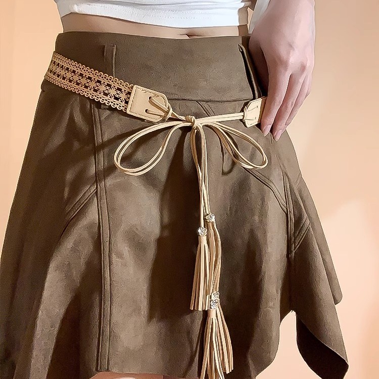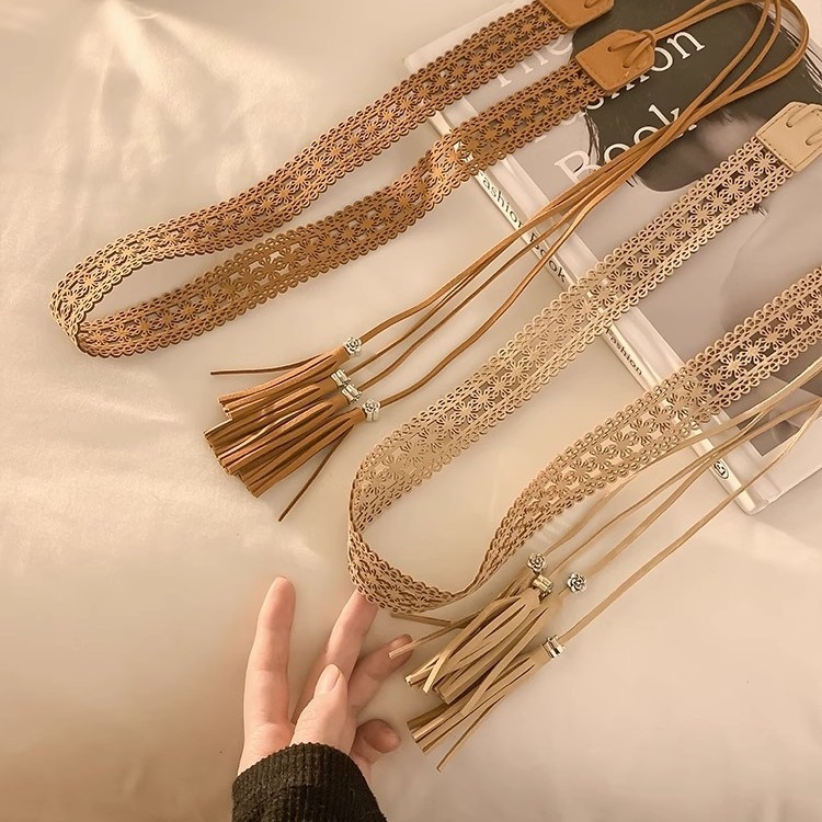 波西米亚风镂空花边腰链配裙子高级感流苏装饰腰带连衣裙收腰配饰