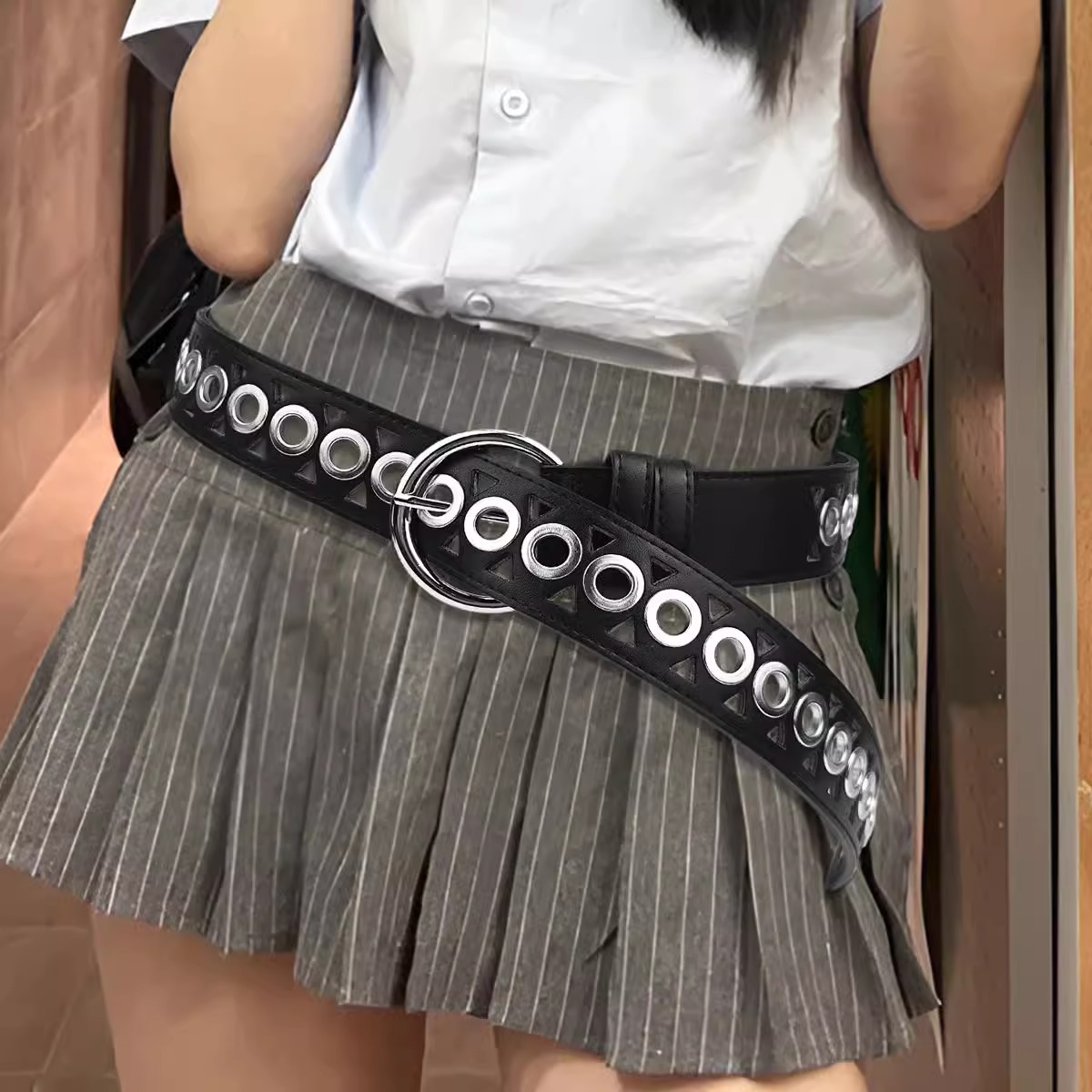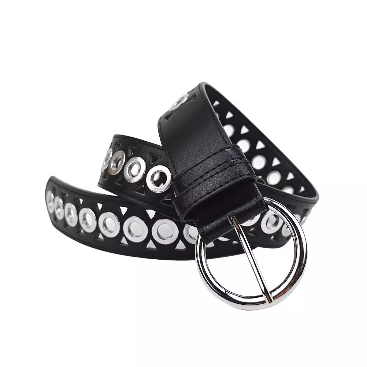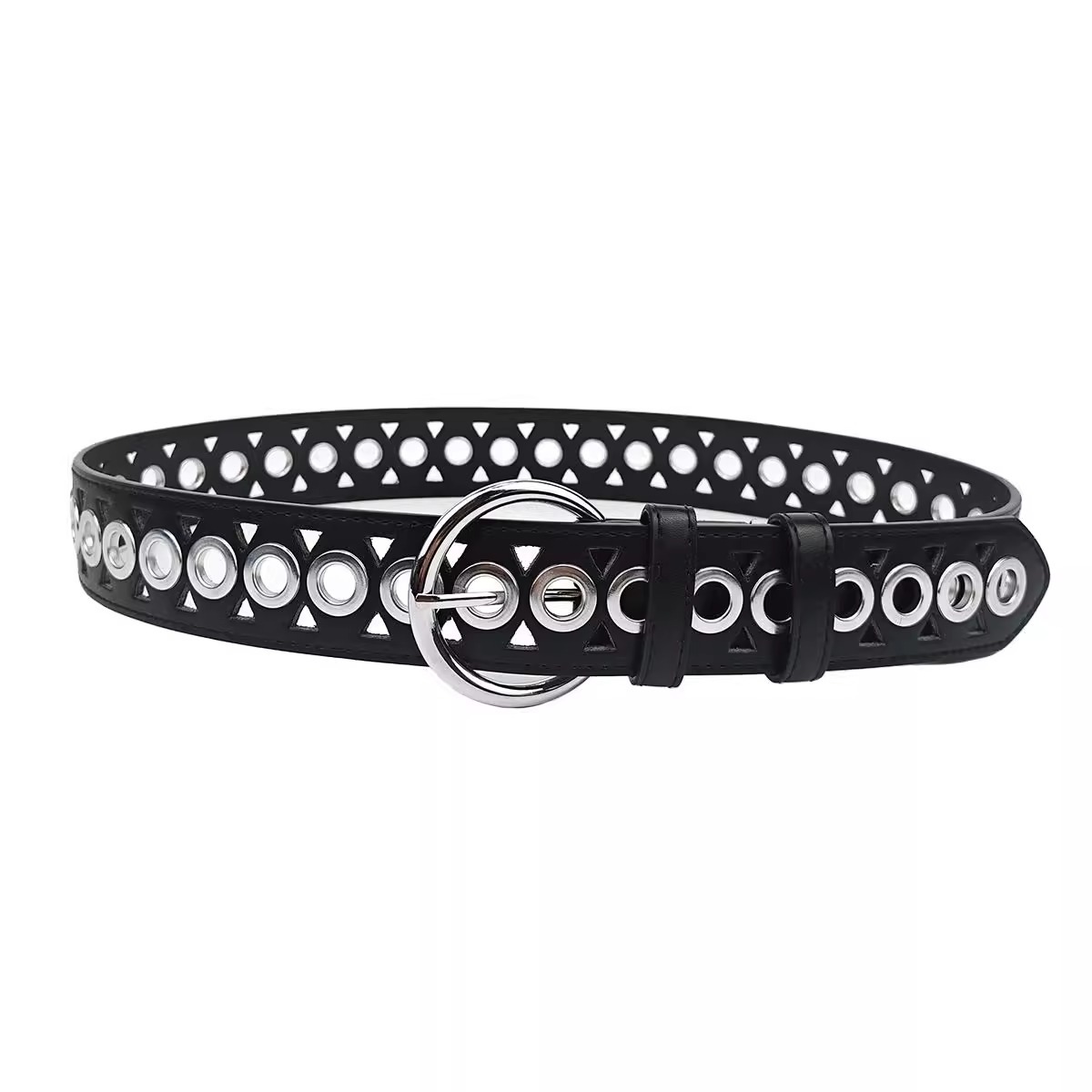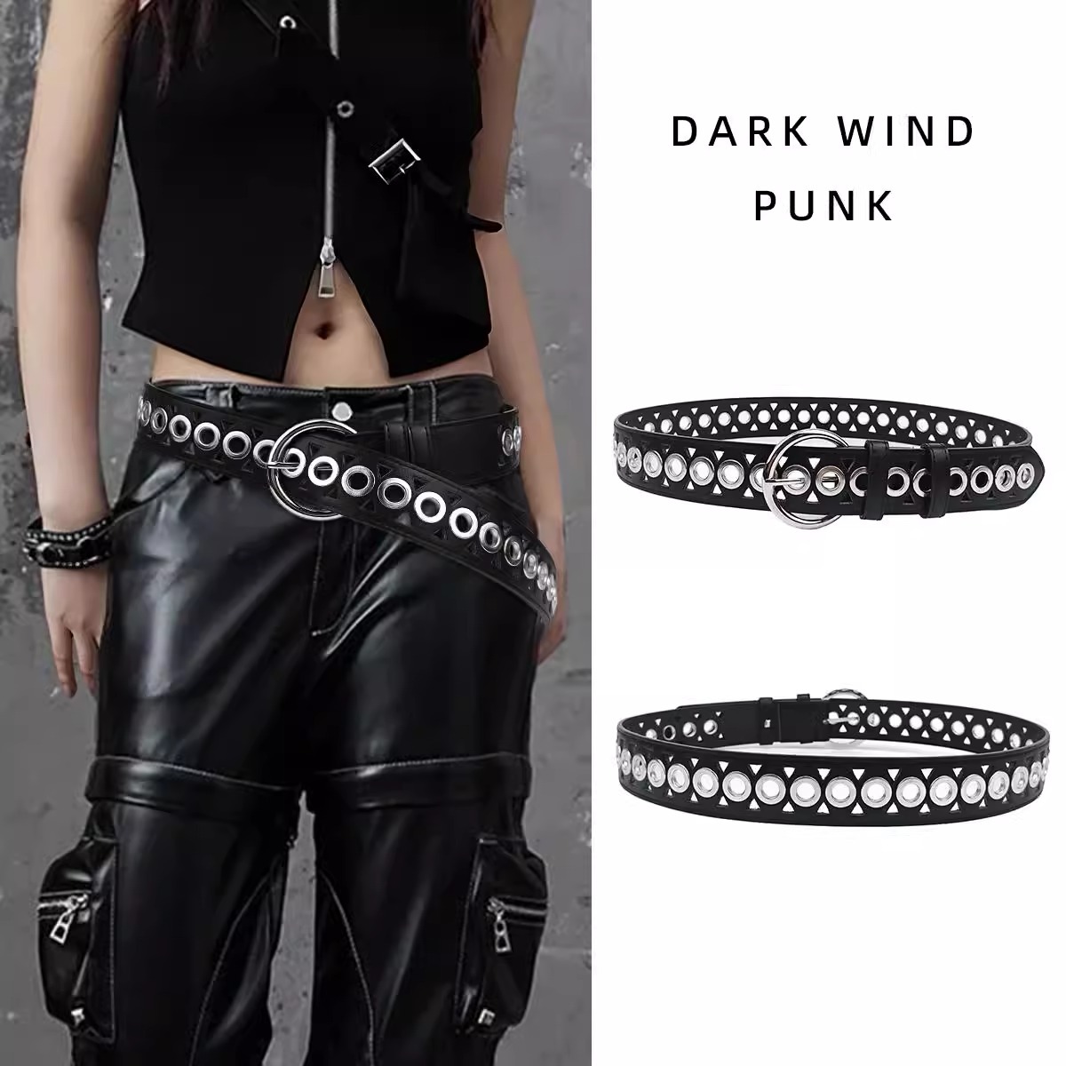 新款镂空气眼朋克风PU皮带欧美风个性y2k潮流腰带男女同款暗黑风
