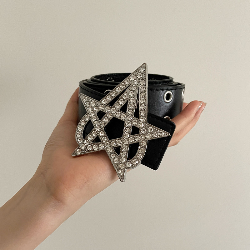 美式Y2K重工五角星爱心腰带女小众个性设计镶嵌皮带配牛仔裤配饰